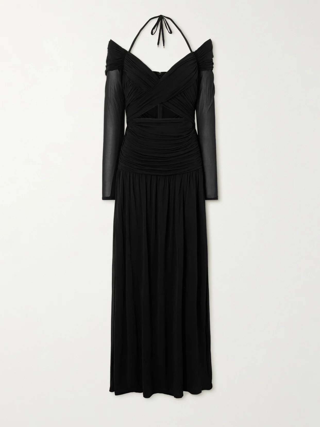 Illuminate Cold-shoulder Cutout Pleated Chiffon Halterneck Maxi Dress