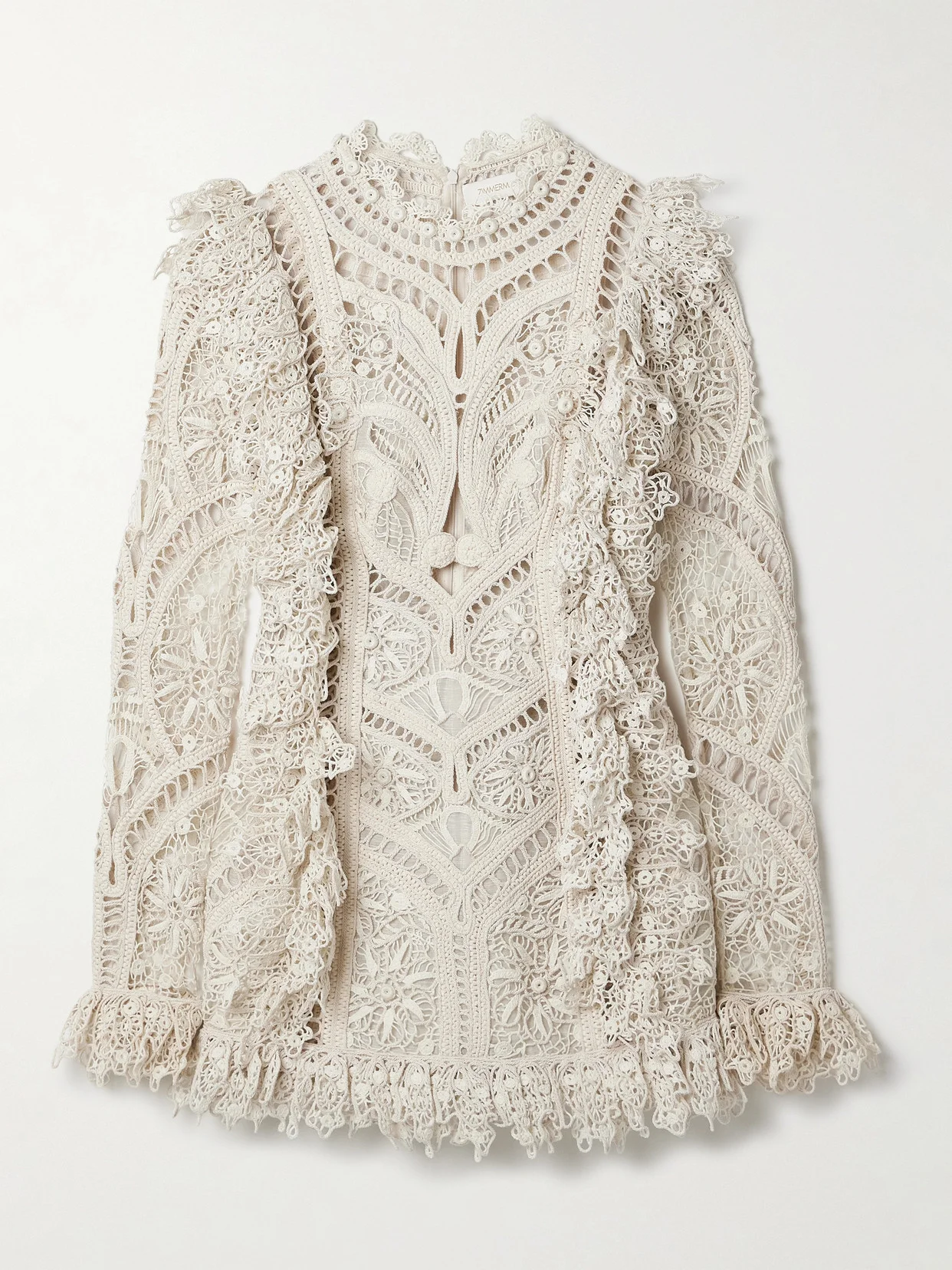 Illuminate Cornelli Ruffled Linen And Silk-blend Guipure Lace Mini Dress