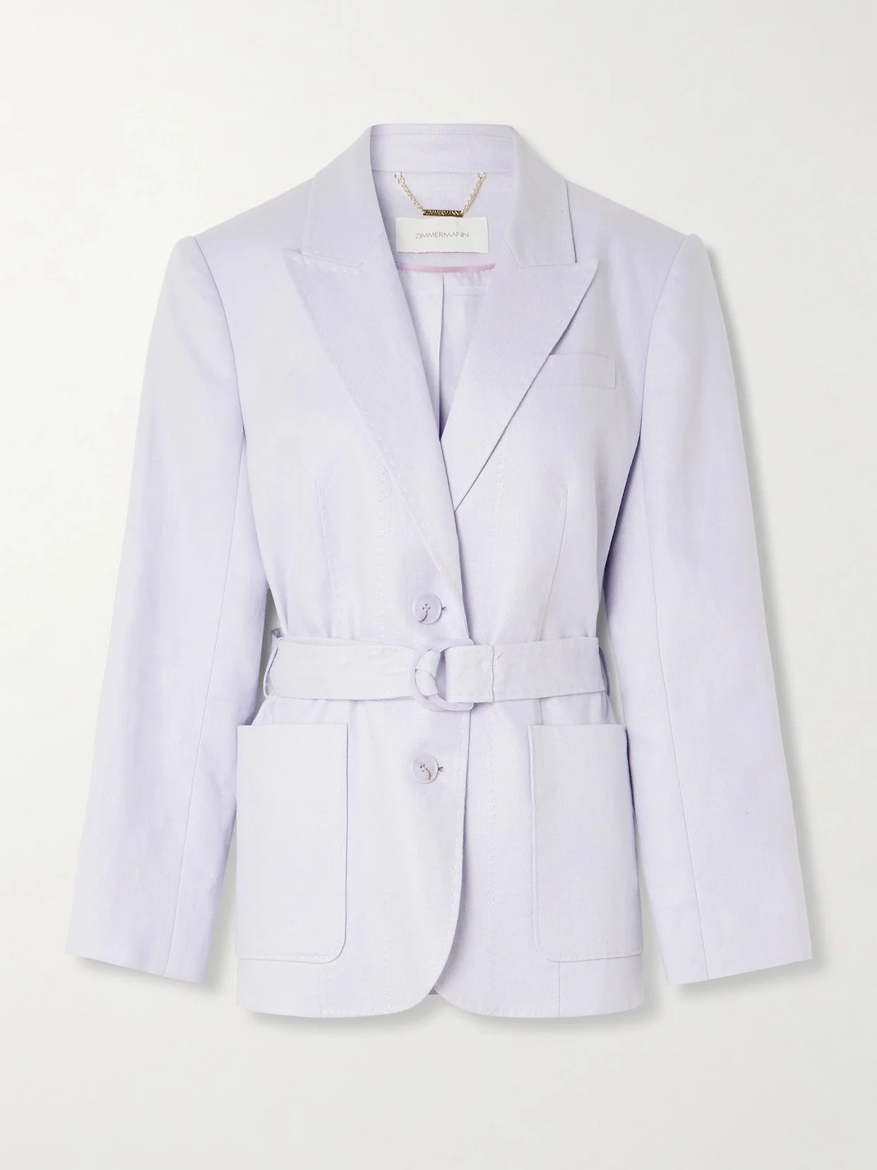 For a polished finish, look to Zimmermann's 'Luna' blazer. Tailored from lightweight linen with tonal topstitching, it features peak lapels and lightly padded shoulders. The belt can be used to cinch the waist.