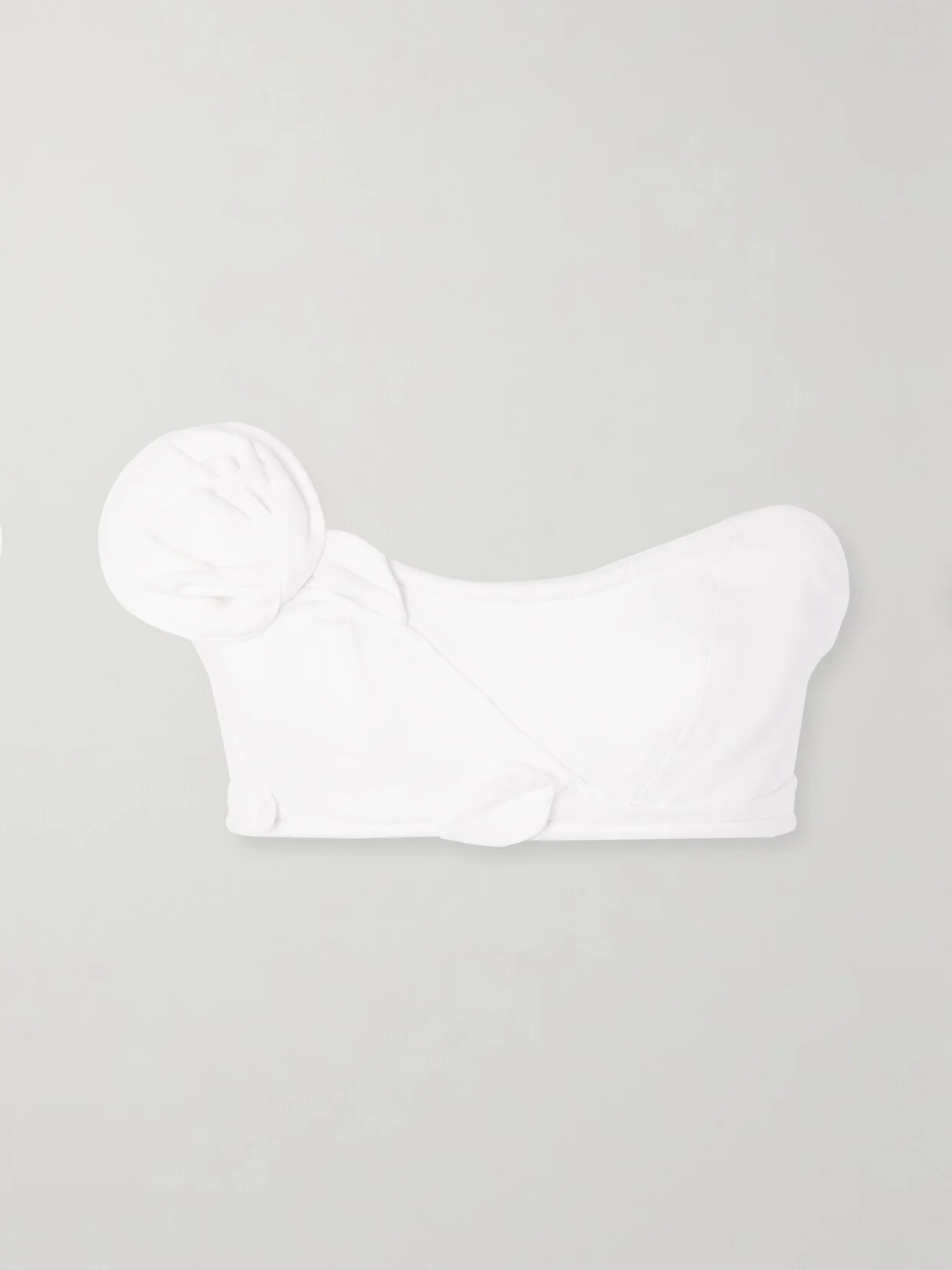 Nicky Zimmermann filled her moodboard with photographs of dance halls in the '50s when designing her Resort '24 'Matchmaker' collection. Styled on the runway with the matching skirt, this cropped top is cut from ivory linen and appliqued with a handmade rose.