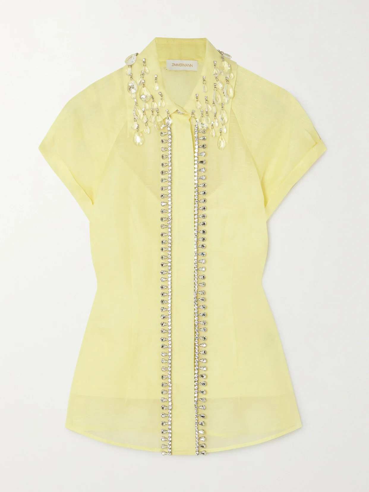 Zimmermann's 'Matchmaker' shirt is made from slightly sheer linen and silk-blend and underpinned with a tonal cami. Designed for a slim fit, its collar and placket are embellished with sparkling crystals.