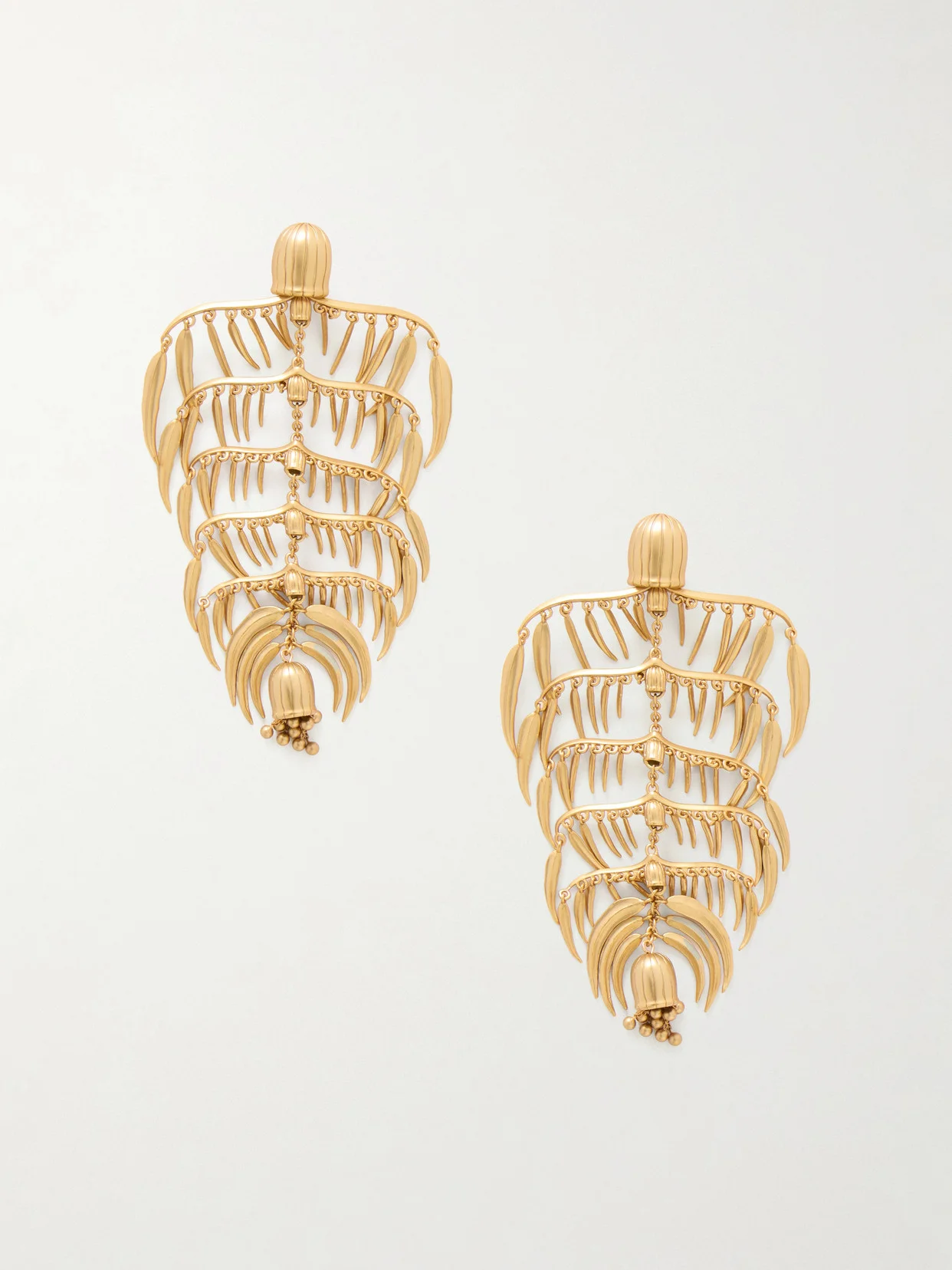 Zimmermann's 'Mira Chandelier' drop earrings are cast in gold-tone metal with an openwork silhouette that creates lightness and movement. The sculptural shape is suspended from a polished stud and finished with a delicate charm.