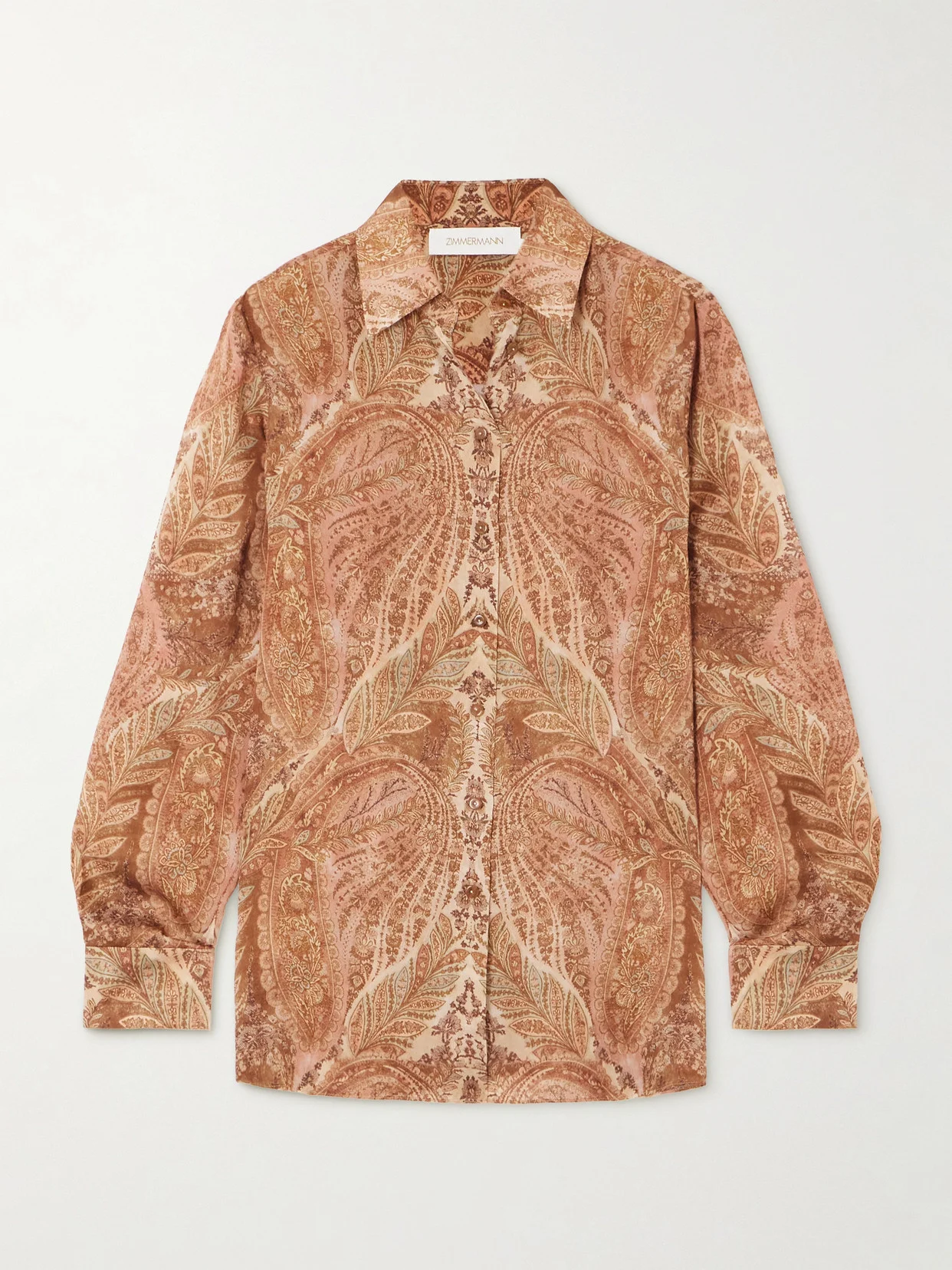 Zimmermann's shirt captures the bohemian drama of the label's Fall '25 collection. Worn on the runway, it's made from silk-satin patterned with paisley swirls and has a pleated back yoke to enhance the shape. Leave a few top buttons undone for a more relaxed feel.