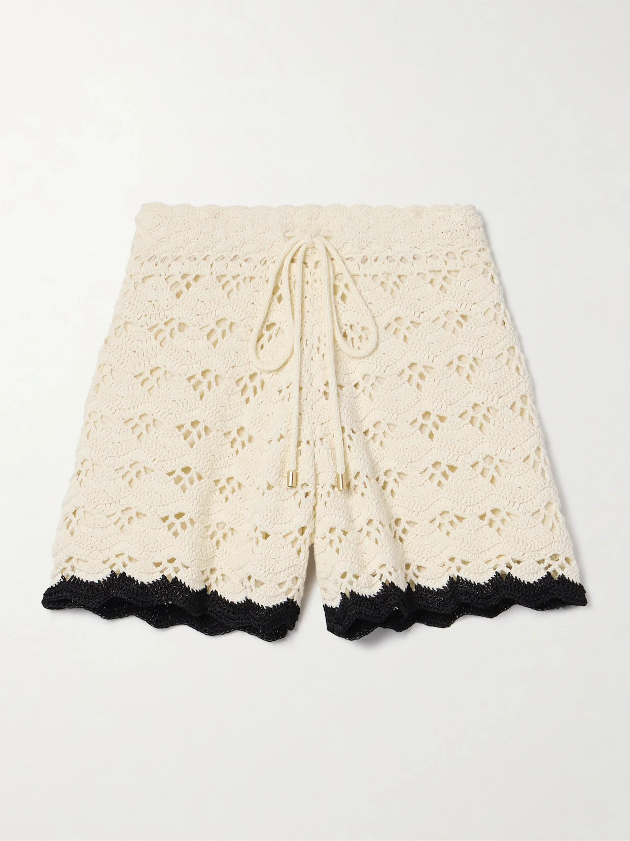 When worn with the matching tank, Zimmermann's 'Rhiannon' shorts create a stylish set. They're crocheted from breathable cotton and have a contrasting scalloped hem. Adjust the metal-tipped drawstring ties to your liking.