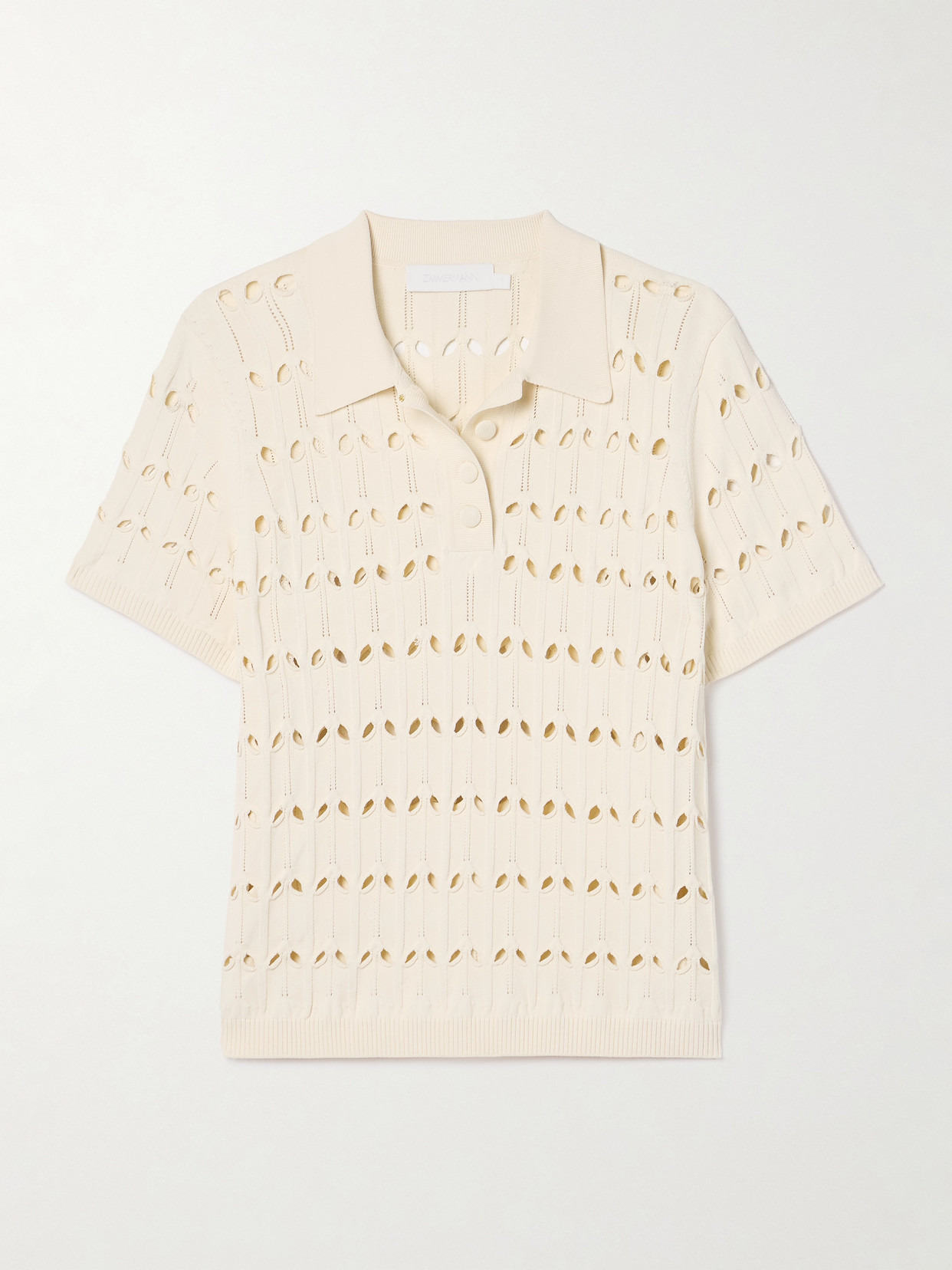 Rhiannon Cutout Pointelle-knit Polo Shirt