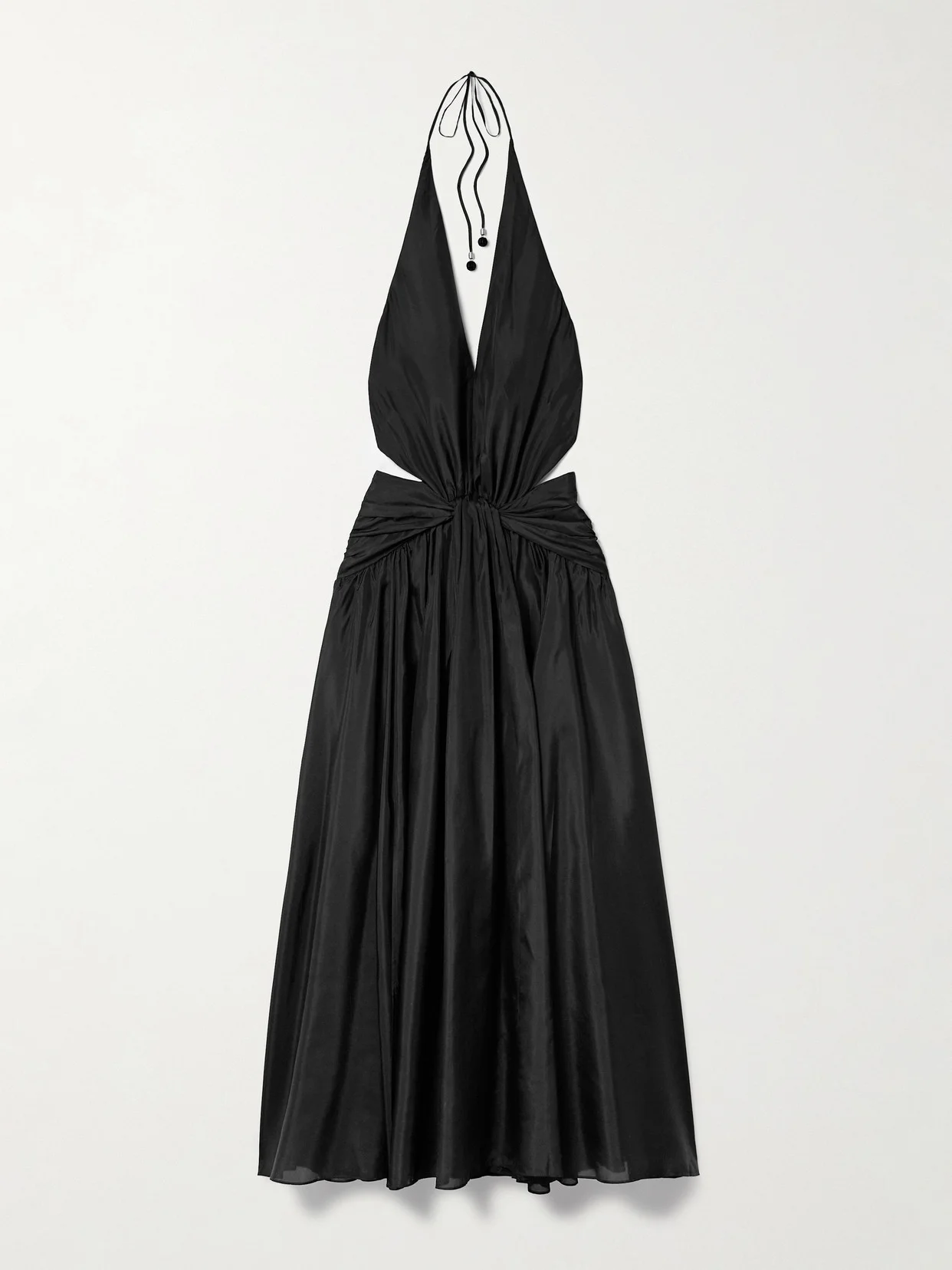 Rhiannon Open-back Draped Organic Silk Halterneck Maxi Dress