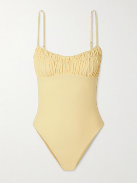 Gathered Floral-print Cotton-blend Poplin Midi Dress