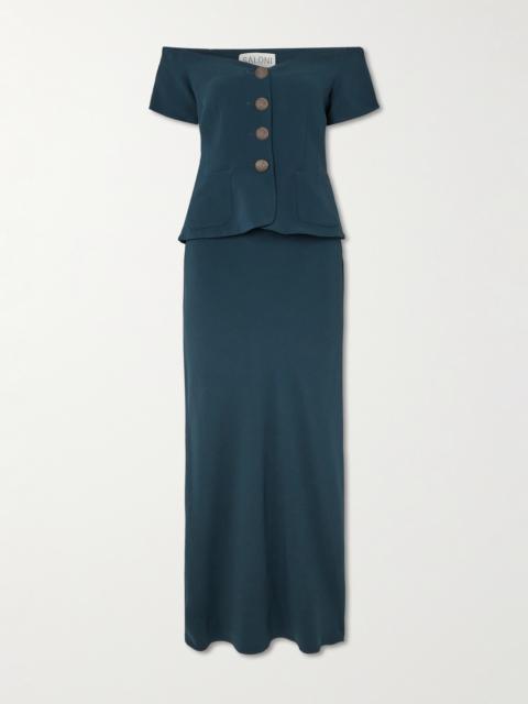 Clementine Off-the-shoulder Embellished Cady Midi Dress