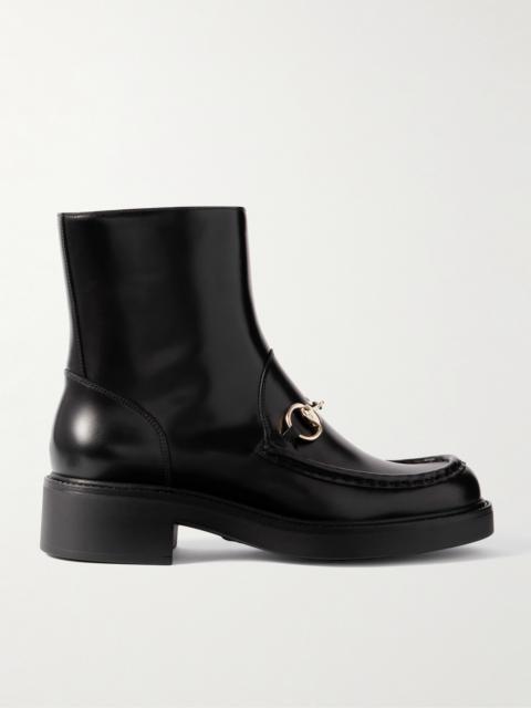 Horsebit-embellished Patent-leather Ankle Boots
