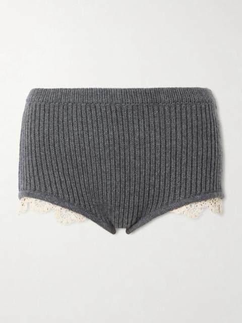 Crochet-trimmed Knitted Cashmere Shorts