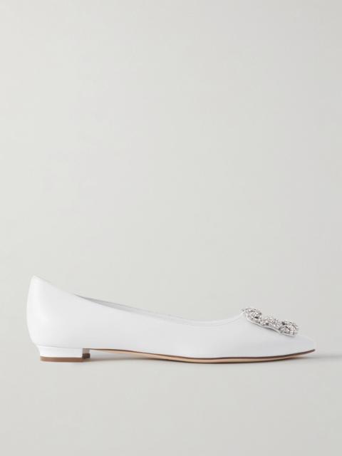 Hangisi 10 crystal-embellished leather point-toe flats White