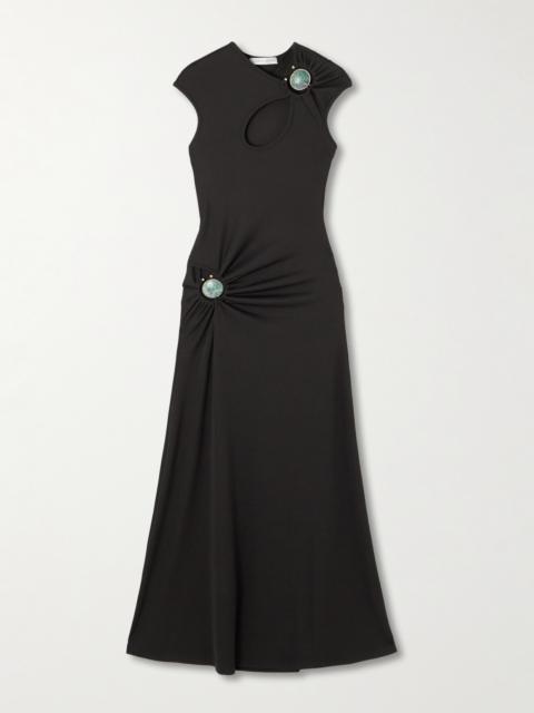 Hollow Cutout Embellished Ribbed Jersey Maxi Dress