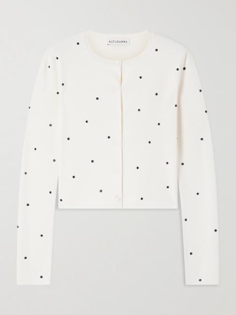 Dorrie Cropped Crystal-embellished Knitted Cardigan