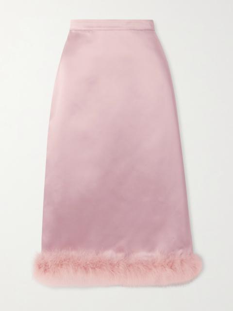Feather-trimmed Satin Midi Skirt