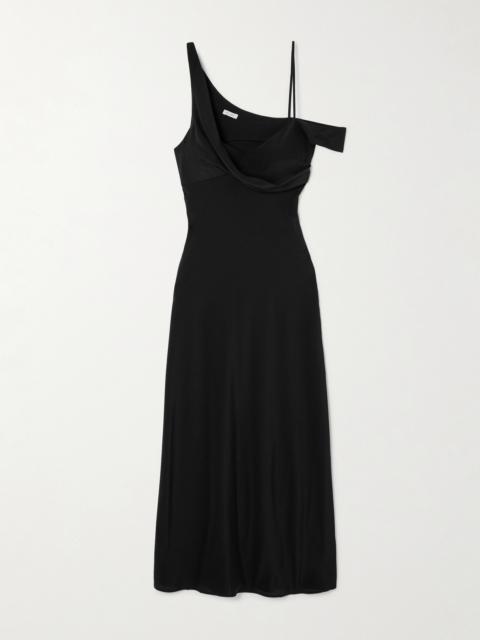 Kirsty Wrap-effect Paneled Leather Midi Dress