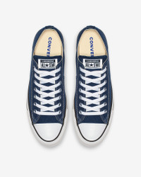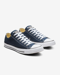 You need a style to rely on. The Chuck Taylor All-Star is a staple: the high-top and oxford silhouettes stay simply classic, while the white laces and star ankle patch give a nod to the legacy of the Chuck. This is the go-with-everything go-to that you won’t get sick of going to. Stock up. Benefits - Durable canvas you know and love - Outsole pattern for traction (makes sure you don’t fall and eat it) - Star logo patch says you get it - Silhouette looks good, has been good for decades, will be good tomorrow, etc. Product Details - Shown: Navy - Style: M9697-410 SIZE & FIT Fits large; we recommend ordering a half size down