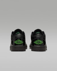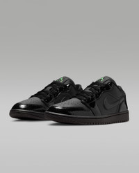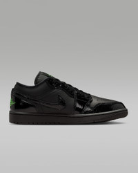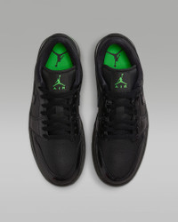 The timeless style of the Air Jordan 1 Low gets updated with a full leather upper, giving it a rugged look. Pops of color help classic details stand out. Benefits - Leather in the upper offers durability and structure. - Encapsulated Nike Air-Sole unit provides lightweight cushioning. - Rubber in the outsole gives you everyday traction. Product Details - Wings logo on heel - Jumpman on tongue - Shown: Black/Black/Black/Scream Green - Style: IQ9701-010