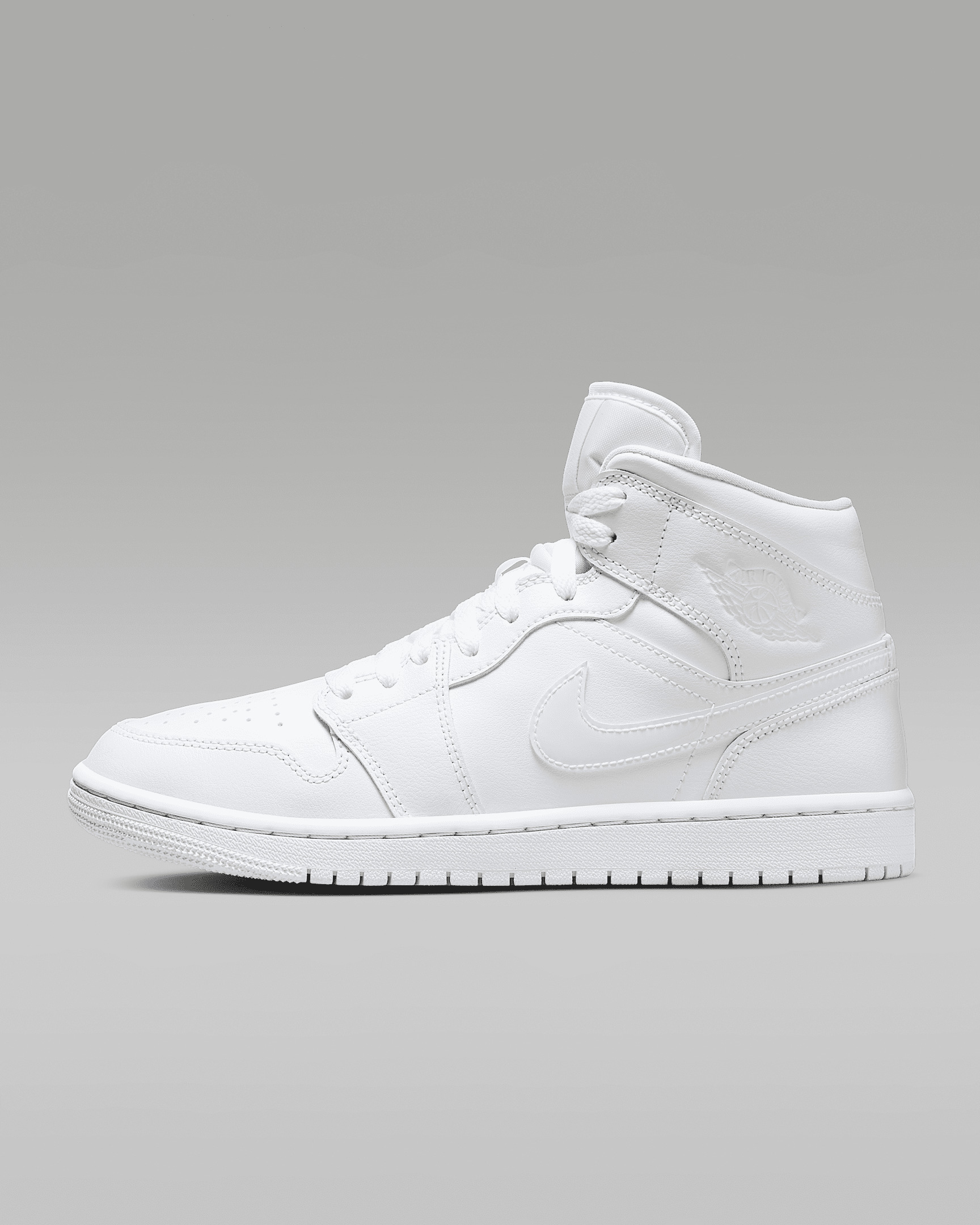 Never mess with a classic. Keep heritage on your feet with a white-on-white look that will never go out of style. Benefits - Genuine and synthetic leathers provide superior durability and style. - Padded tongue and inner upper for added comfort and security. - Iconic winged Air Jordan logo on upper for traditional branding. - Encapsulated Air unit in the heel gives the lightweight cushioning you know and love. - Solid rubber outsole with tread for standard traction. Product Details - Stitched-down Swoosh logo - Wings logo on the collar - Shown: White/White/White - Style: DV0991-111