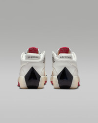 There's only one way to celebrate 40 years of Air Jordans. You gotta do what's never been done. For the first time, we stacked a full-length Zoom Strobel unit on top of full-length ZoomX foam for responsive, marathon-level cushioning. Up top, internal straps work with premium materials to give you optimal containment. Underfoot, a unique herringbone traction pattern helps you leave defenders guessing. Aged leather and a perforated Swoosh logo bring a worn-in look to the court. Cushioning. Bounce. Traction. It's almost too easy. Product Details - Shown: Sail/Black/Varsity Red/White - Style: IQ4087-100