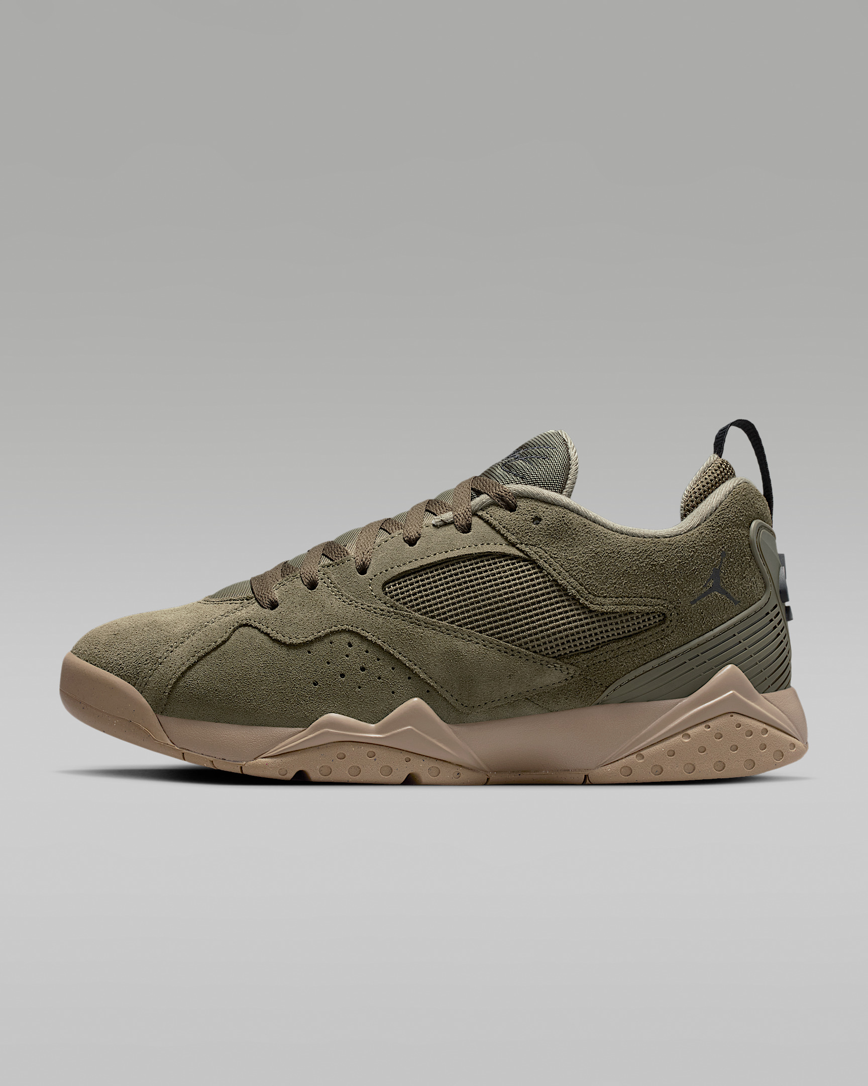 How do you top the AJ7? You reimagine it with a low-top silhouette. We started with the layered upper and iconic midsole that turned the original into an instant classic. Then we added textile accents and a padded, low-cut collar to give you a fresh, modern look. Benefits - Real and synthetic leather adds durability and structure to the upper. - Nike Air technology absorbs impact for cushioning with every step. - Foam midsole adds lightweight cushioning. - Rubber outsole gives you durable traction. Product Details - Pull tab on heel - Foam midsole - Perforations on sides - Shown: Medium Olive/Khaki/University Red/Black - Style: HQ3950-201