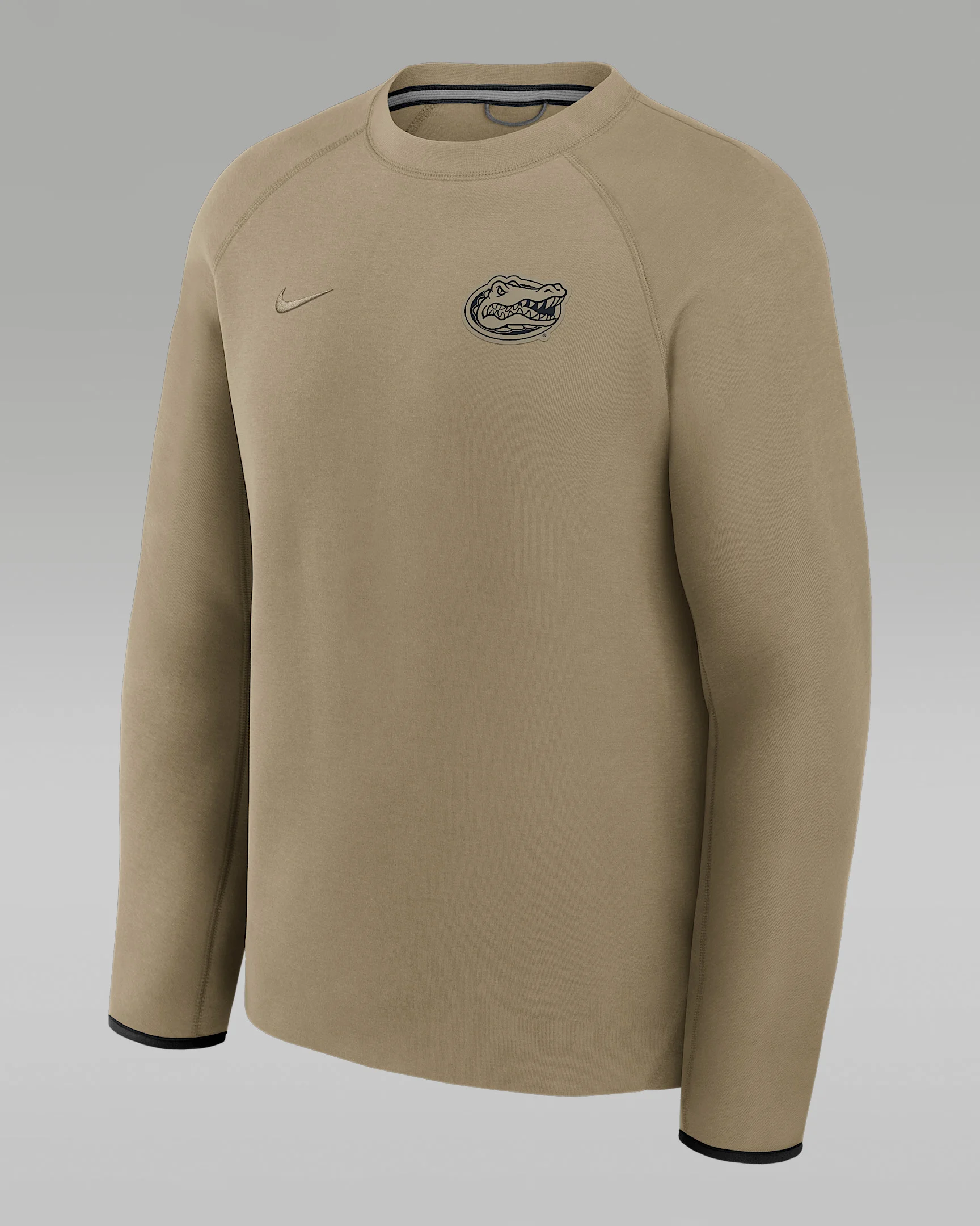 Featuring raglan sleeves with a wider underarm area and premium, heavyweight fleece fabric that feels smooth on the inside and outside, this Florida Gators Tech Fleece Crew helps keep you warm in chilly temperatures as you support your favorite collegiate squad. Product Details - 47% recycled polyester/42% cotton/11% organic cotton - Machine wash - Imported - Shown: Olive - Style: 0JL60IDHUFN-GML