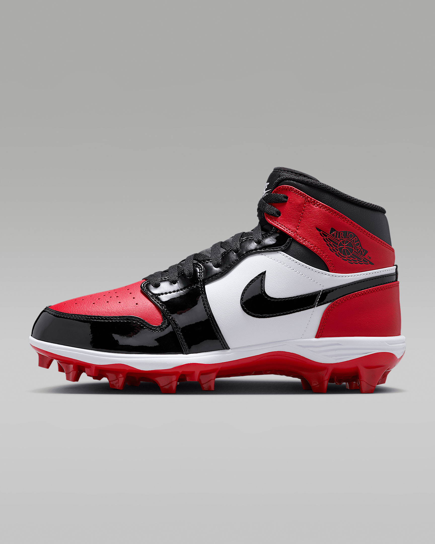 Engineered for speed, the Jordan 1 Mid TD offers a new degree of agility and quickness. Its wide stud placements help you cut faster than ever before. And the durable design is backed by synthetic leather details in the upper that help resist abrasion. Benefits - Upper takes the best parts of the AJ1 and reimagines the silhouette for a football cleat. - Wide stud placement helps you make quick cuts on the field. - External midsole provides extra comfort. Product Details - Shown: Gym Red/White/Black - Style: FJ6805-601