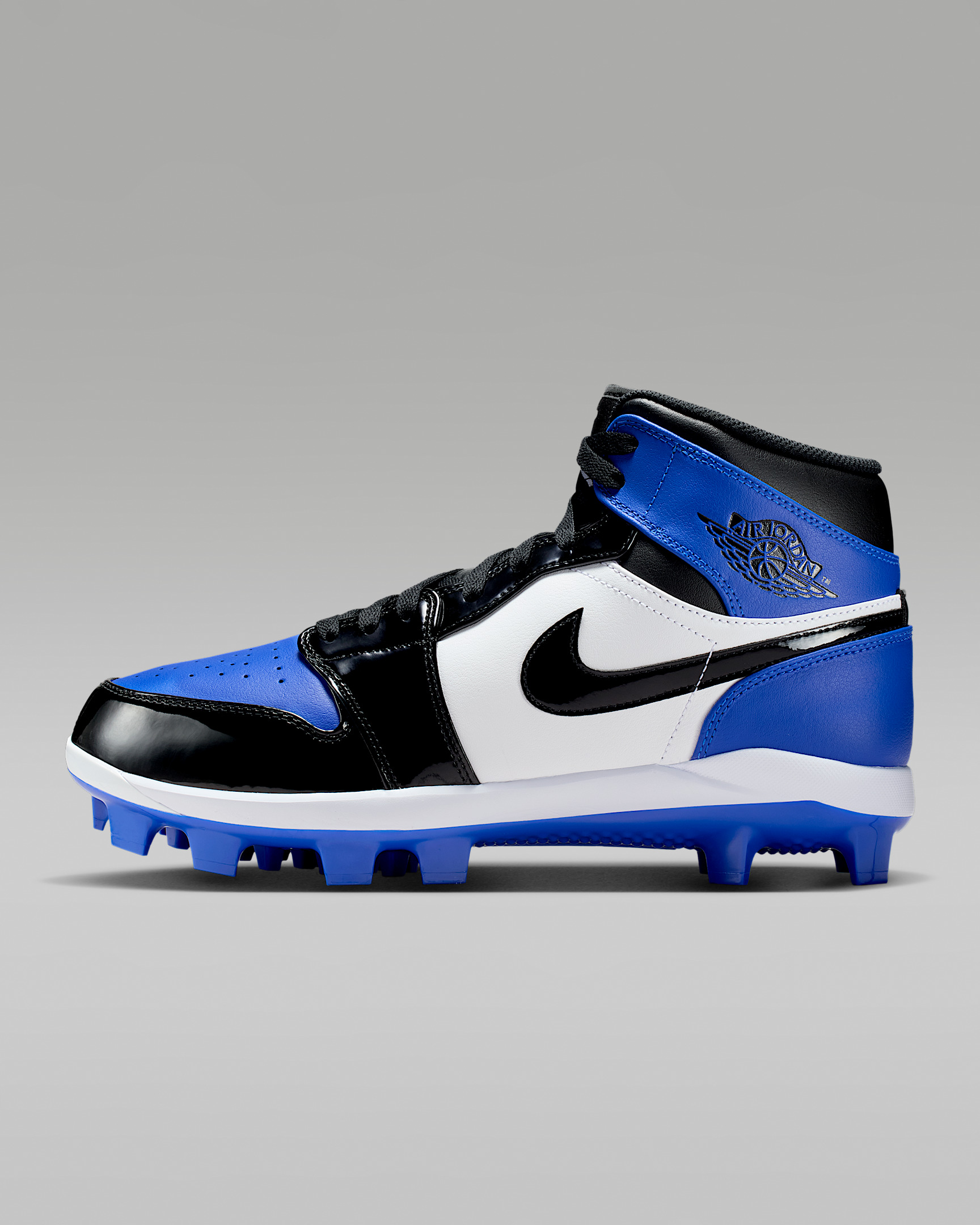 Bringing the iconic design of the Air Jordan 1 to the ballpark, the Jordan 1 Retro MCS has a molded outsole for traction that digs in, while its durable upper delivers a supportive fit. Benefits - Synthetic leather upper provides durable comfort and support. - Foam midsole delivers lightweight cushioning around the bases. - Cleated TPU plate offers lightweight, durable traction. - An Air Jordan Wings logo on the upper brings basketball details to the diamond. Product Details - Shown: Game Royal/White/Black - Style: AV5354-400