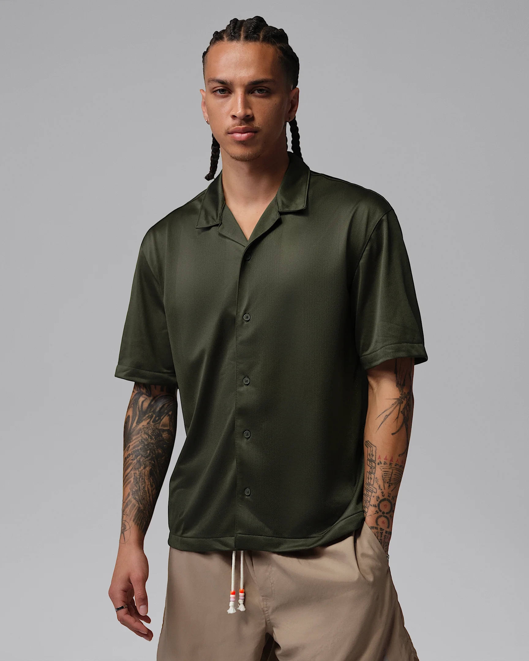 Elevate your essentials for festival season with this button-down top. It's made with breathable mesh and has Jordan style through and through. Product Details - Body: 100% Polyester - Machine wash - Imported - Shown: Cargo Khaki/Black - Style: IF1957-325 SIZE & FIT Model is wearing size M and is 6′0″183cm Loose fit: roomy and relaxed