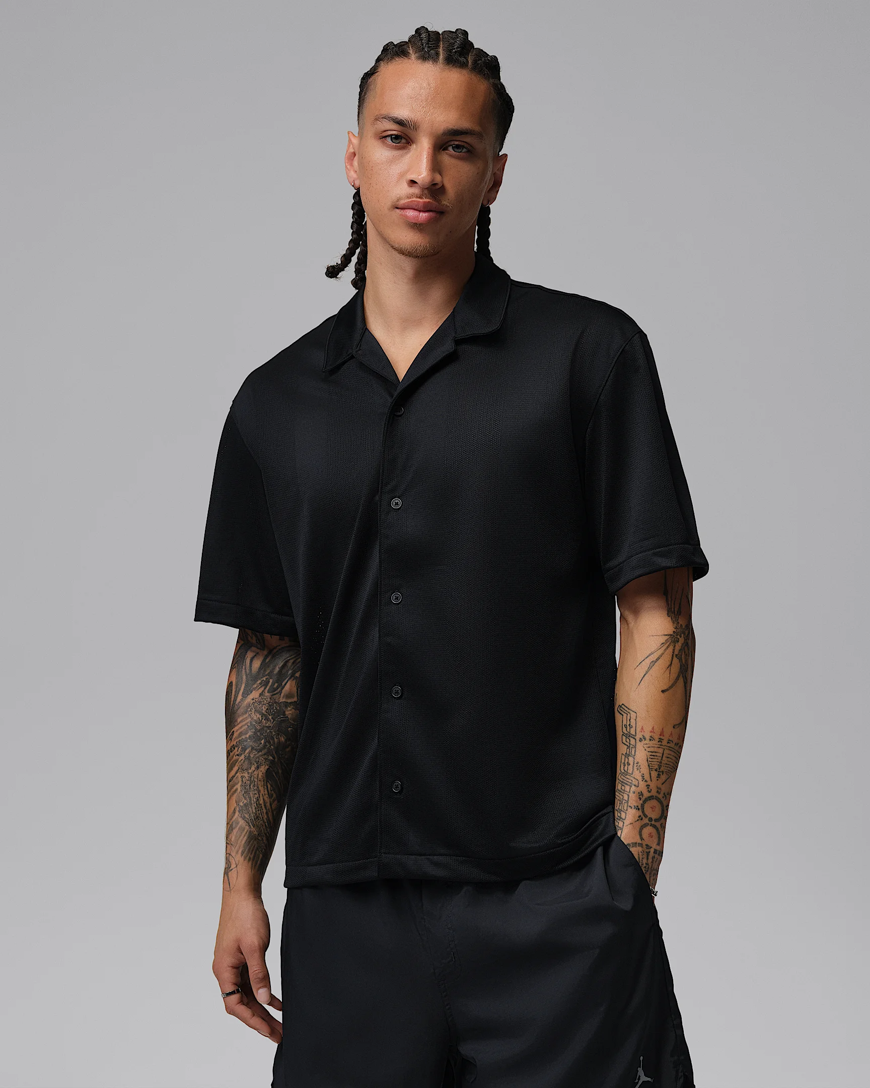 Elevate your essentials for festival season with this button-down top. It's made with breathable mesh and has Jordan style through and through. Product Details - Body: 100% Polyester - Machine wash - Imported - Shown: Black/Pale Ivory - Style: IF1957-010 SIZE & FIT Model is wearing size M and is 6′0″183cm Loose fit: roomy and relaxed