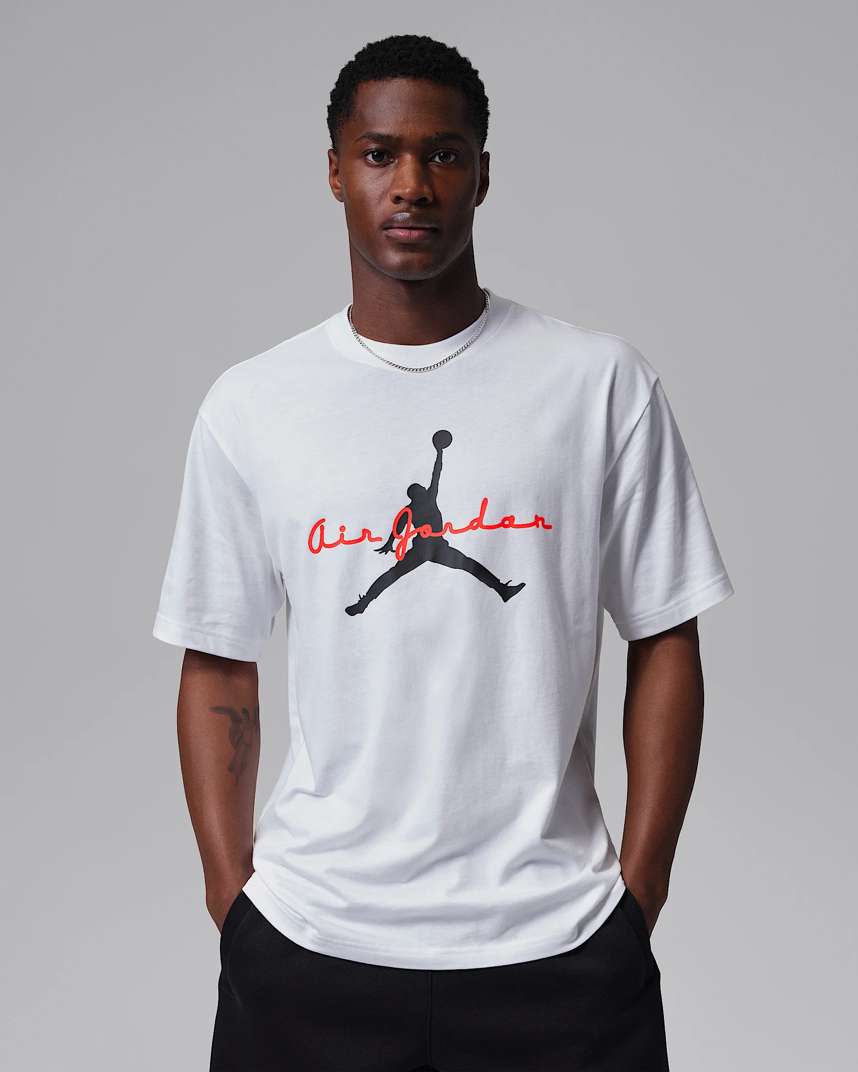 Air Jordan: Big, bold and iconic. Printed on comfortable cotton for reliable everyday wear. Product Details - 100% cotton - Machine wash - Imported - Shown: White/Infrared 23/Black - Style: IF3034-100 SIZE & FIT Standard fit: easy and traditional