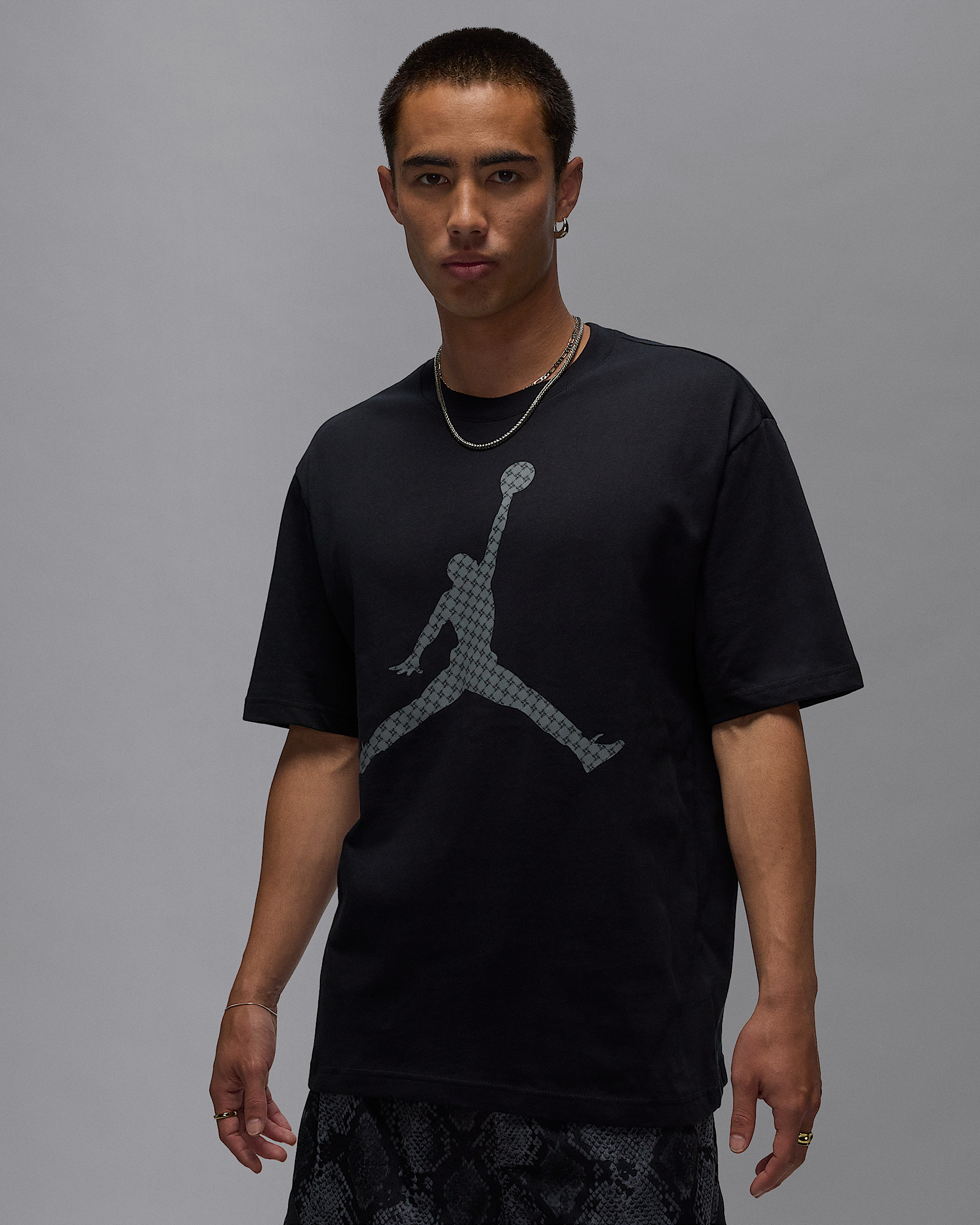 Midweight cotton keeps this classic Jordan tee soft and comfortable. Product Details - 100% cotton - Machine wash - Imported - Shown: Black/Iron Grey - Style: IF0399-010 SIZE & FIT Model is wearing size M and is 5′11″180cm Standard fit: easy and traditional