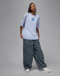 Get this one into your rotation. The Jordan Essentials Graphic T-Shirt is roomy and loose, made from premium structured cotton. Fresh "23" graphics nod to MJ, the greatest of all time. Benefits - Heavyweight cotton fabric feels structured and premium. - The fit has a roomy feel with longer, dropped-shoulder sleeves. Product Details - Loose fit for a roomy feel - Ribbed neckband - Printed graphics - 100% cotton - Machine wash - Imported - Shown: Ghost - Style: DM3244-057 SIZE & FIT Model is wearing size S and is 5′11″180cm Loose fit: roomy and relaxed