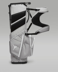 A reflection of Jordan's passion for golf, this bag combines innovation and minute details for the player who wants to take their game to the next level. Golf's well-loved traditions meet a bold, fresh design in the Jordan Golf Bag. A complete bag from top to bottom, it includes a 6-way, full-length divider system and detachable, ergonomic carrying straps. Benefits - 6-way, full-length divider system keeps your clubs organized. - Detachable, ergonomic strap can be worn over 1 or both shoulders. - Soft, velour-lined pocket helps to protect your tech and valuables. - Matching rain hood helps keep your gear dry. - Air Jordan 14-inspired towel ring allows you to access your golf towel easily. - Air Jordan 6-inspired lace-lock umbrella cinch allows you to play in inclement weather. Product Details - 34"H x 13"W - Body: 95% polyester/5% PU leather. Lining: 100% polyester. - Imported - Shown: Medium Grey - Style: J1008184-022