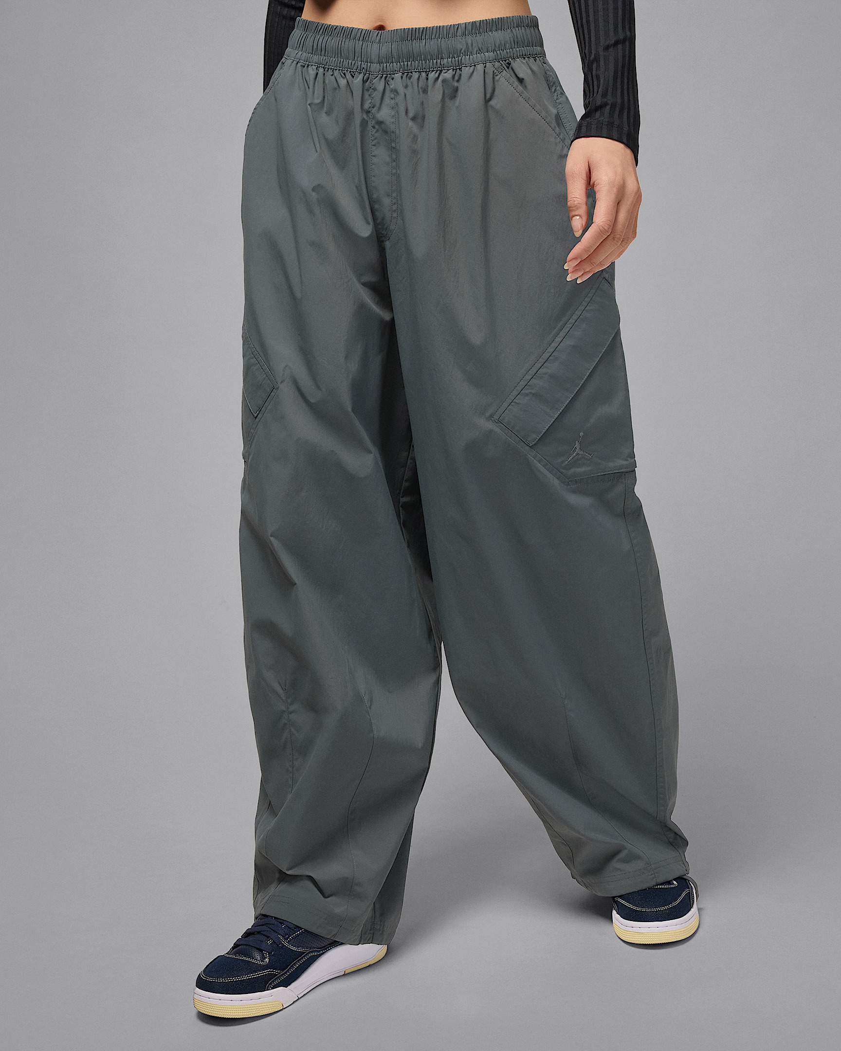 Go big. Go baggy. Lightweight, water-repellent nylon and a roomy fit help give you relaxed style without leaving you feeling weighed down. Drawcords in the hem let you style your fit your way. Benefits - Elastic waistband with drawcord helps you dial in your perfect fit. - Water-repellent finish helps keep you dry in wet weather. - Drawcords at the hem give you styling options. - Side pockets pair with diamond-shaped cargo pockets to give you plenty of storage options. Product Details - Body: 100% nylon. Upper pocket bag: 95% polyester/5% spandex. - Side and back pockets - Machine wash - Imported - Shown: Iron Grey/Iron Grey - Style: HM6144-068 SIZE & FIT Model is wearing size S and is 5′8″173cm Loose fit: roomy and relaxed Fl length: hits below ankle