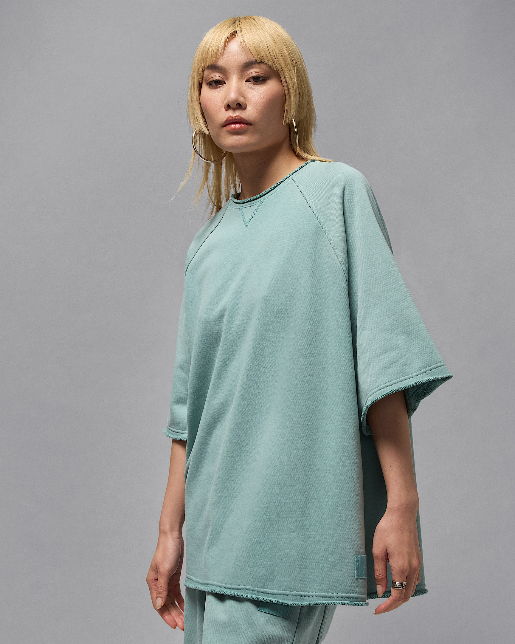 Perfectly oversized. Perfectly comfortable. An allover wash treatment gives this heavyweight French terry top a worn-in look and feel. Raw edges at the hem, collar and sleeves add a bit of attitude to your look. Product Details - 90% cotton/10% polyester - Machine wash - Imported - Shown: Cannon/Mineral - Style: IB9850-017 SIZE & FIT Model is wearing size S and is 5′8″173cm Oversized fit: exaggerated and spacious