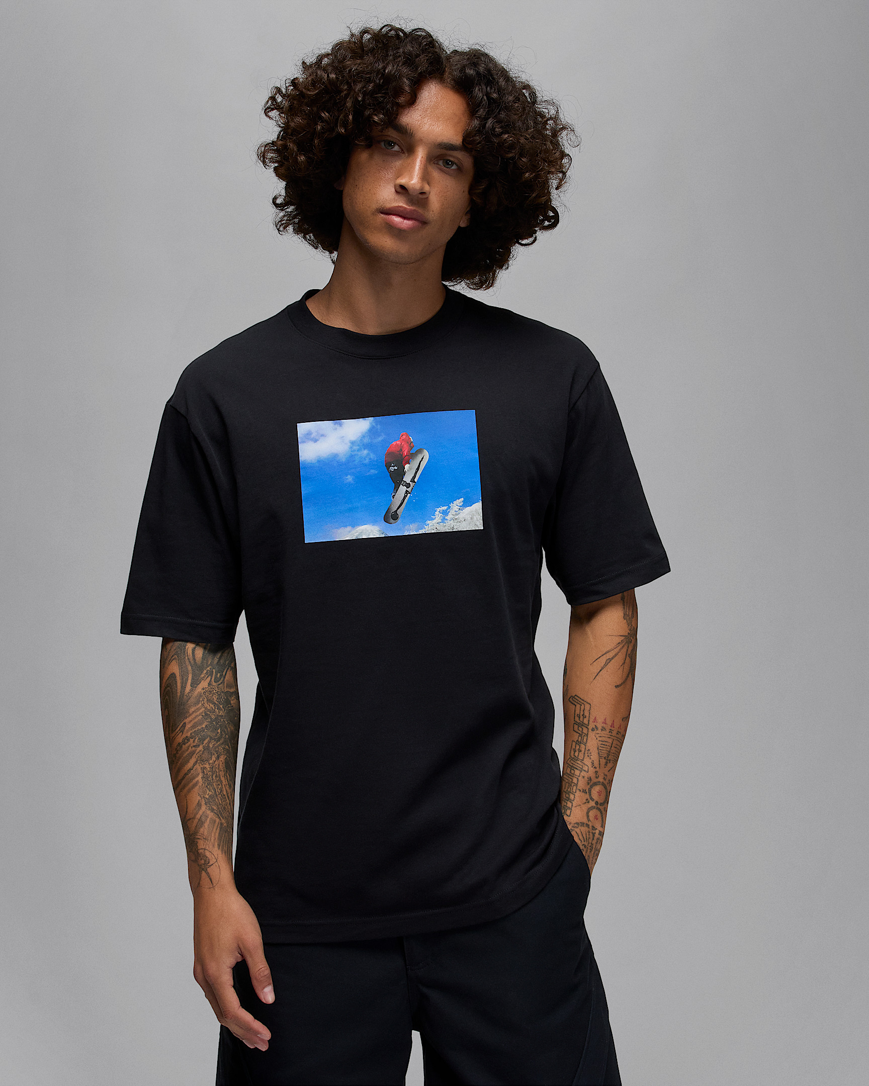 Jordan heritage rides wherever. From the slopes to a comfortable cotton tee. Product Details - 100% cotton - Machine wash - Imported - Shown: Black/Light Photo Blue - Style: IM6509-010 SIZE & FIT Model is wearing size M and is 6′0″183cm Standard fit: easy and traditional