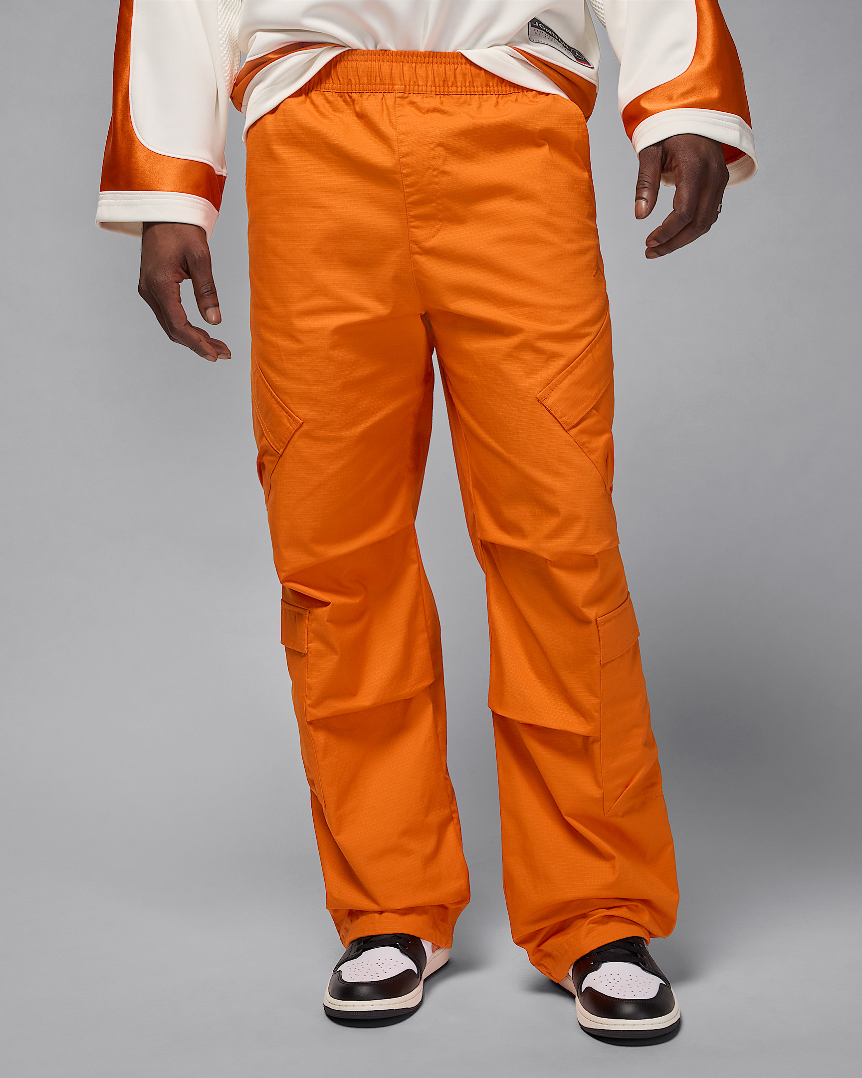 These lightweight and roomy ripstop pants are packed with utilitarian flare and heritage Jordan style. Diamond-shaped pockets combine with standard cargo pockets for a unique look. Bungees at the ankles let you adjust the length of your pants. Benefits - Ripstop material is strong and durable. - Elastic waistband with drawcord lets you dial in your perfect fit. Product Details - 97% cotton/3% spandex - Side and rear pockets - Machine wash - Imported - Shown: Starfish - Style: HV0530-805 SIZE & FIT Model is wearing size M and is 6′2″188cm Loose fit: roomy and relaxed