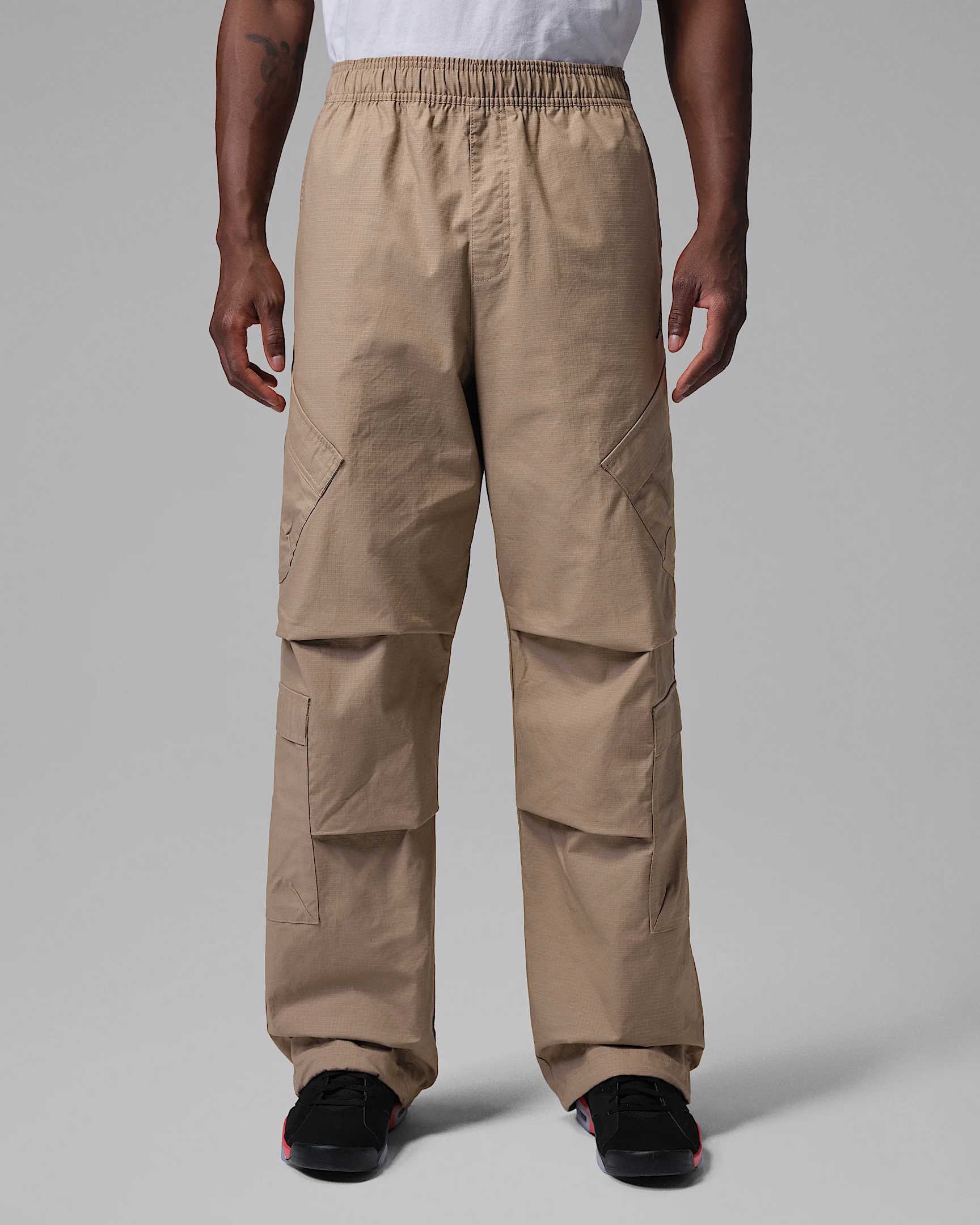 These lightweight and roomy ripstop pants are packed with utilitarian flare and heritage Jordan style. Diamond-shaped pockets combine with standard cargo pockets for a unique look. Drawcords at the ankles let you adjust the length of your pants. Benefits - Ripstop material is strong and durable. - Elastic waistband with drawcord lets you dial in your perfect fit. Product Details - 97% cotton/3% spandex - Side and rear pockets - Machine wash - Imported - Shown: Khaki/Black - Style: HV0530-247 SIZE & FIT Loose fit: roomy and relaxed