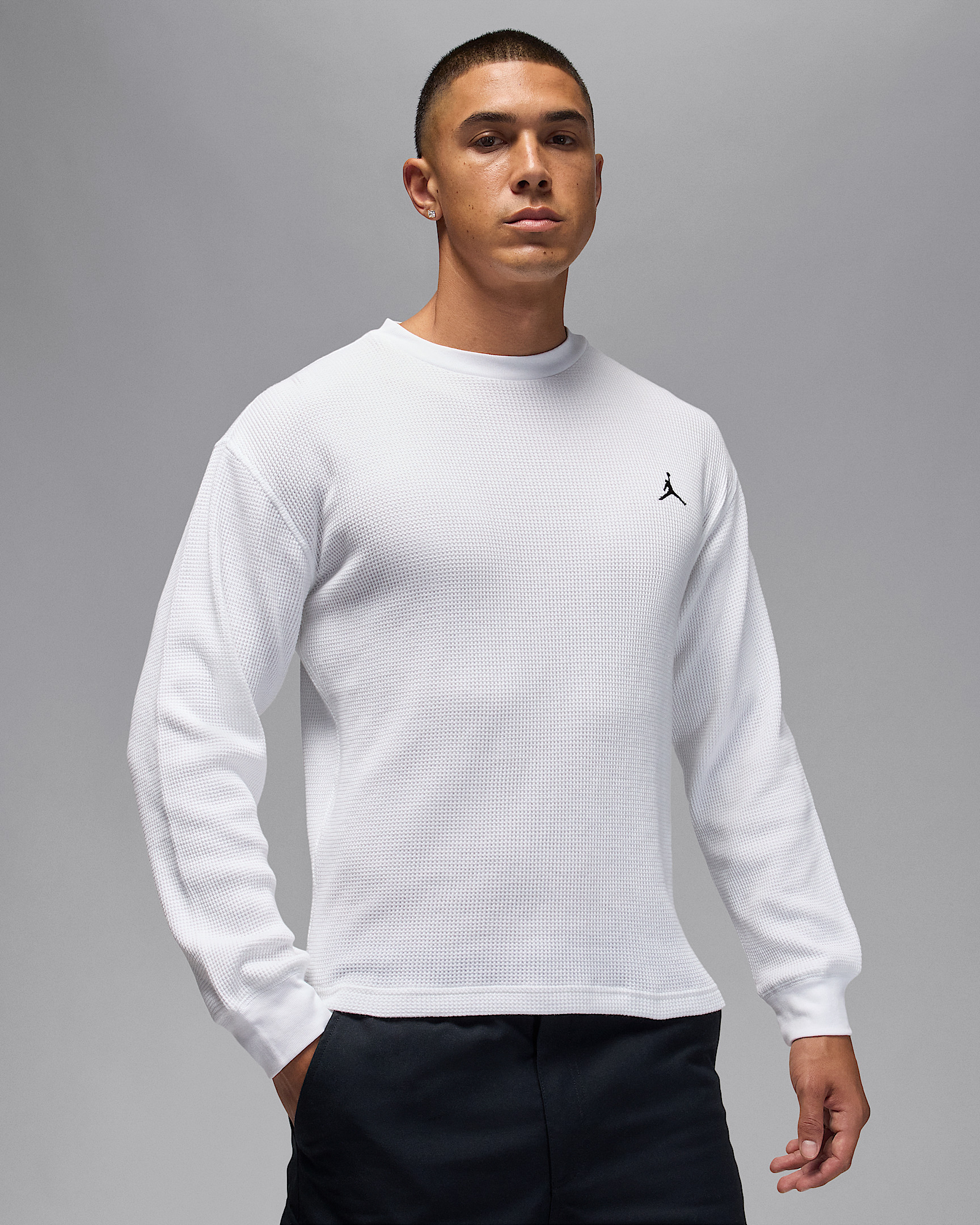 Waffle-knit tops are classic essentials for chilly weather. Ready to rock solo or layer up, this one will see you through the season with subtle Jordan style. Product Details - 75% Cotton, 25% Polyester - Machine wash - Imported - Shown: White/Black - Style: IM6255-100 SIZE & FIT Model is wearing size M and is 6′3″191cm Standard fit: easy and traditional