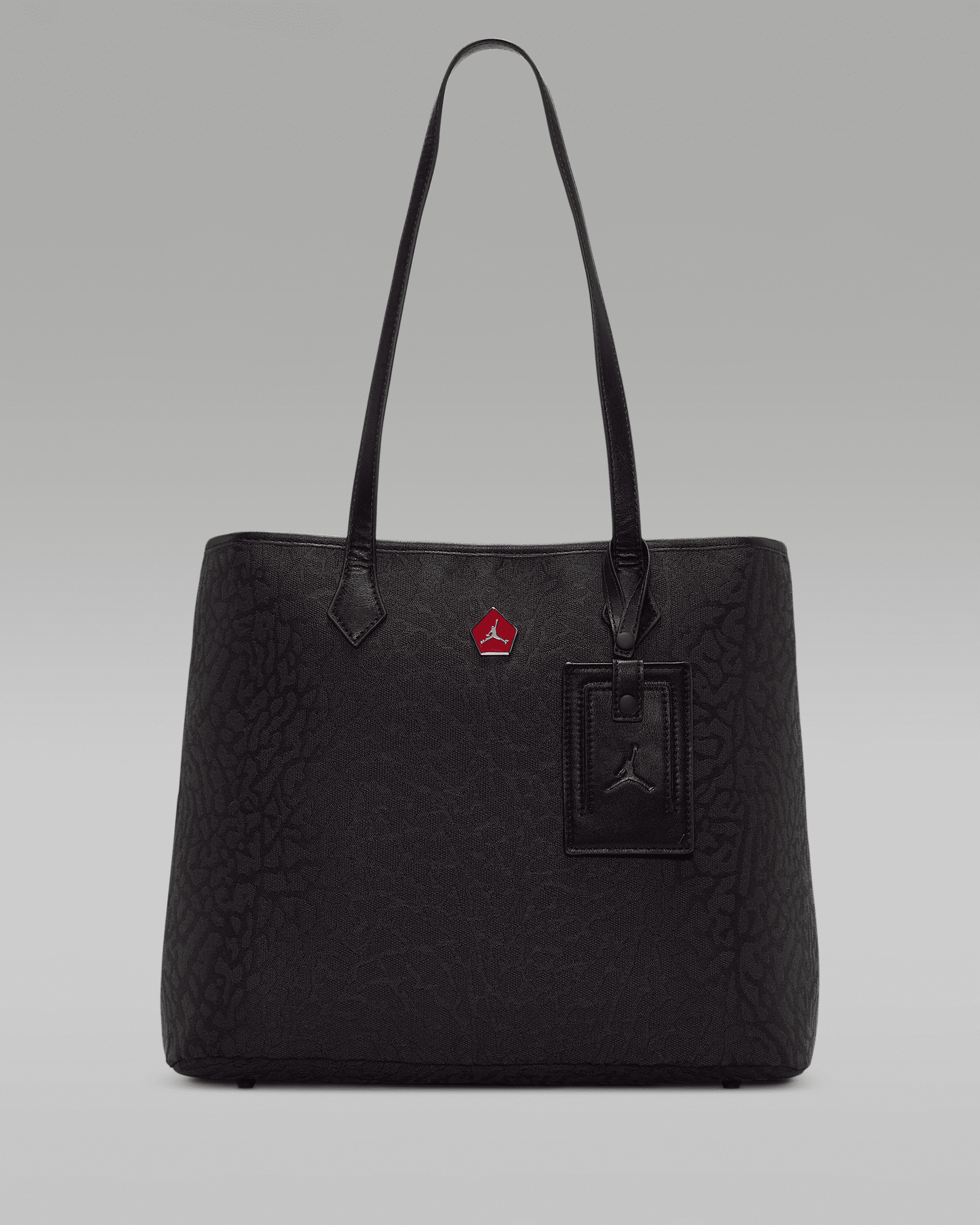 Carry your things like an icon in this tote, made of durable fabric and featuring an allover woven elephant skin pattern that perfectly complements your Jordans. The zippered main compartment houses a laptop sleeve and is spacious enough to carry your things and the handles are long enough for over-the-shoulder wear. Benefits - The inner zippered pocket helps secure smaller items you don't want lost in the shuffle of the main compartment. Product Details - 11"H x 13.15"L x 6"D; Handle Drop: 10.5" - Main Body/Lining: 100% Polyester; Handles/Piecings: 100% Polyurethane - Spot Clean - Imported - Shown: Off Noir - Style: MM9022-G0T