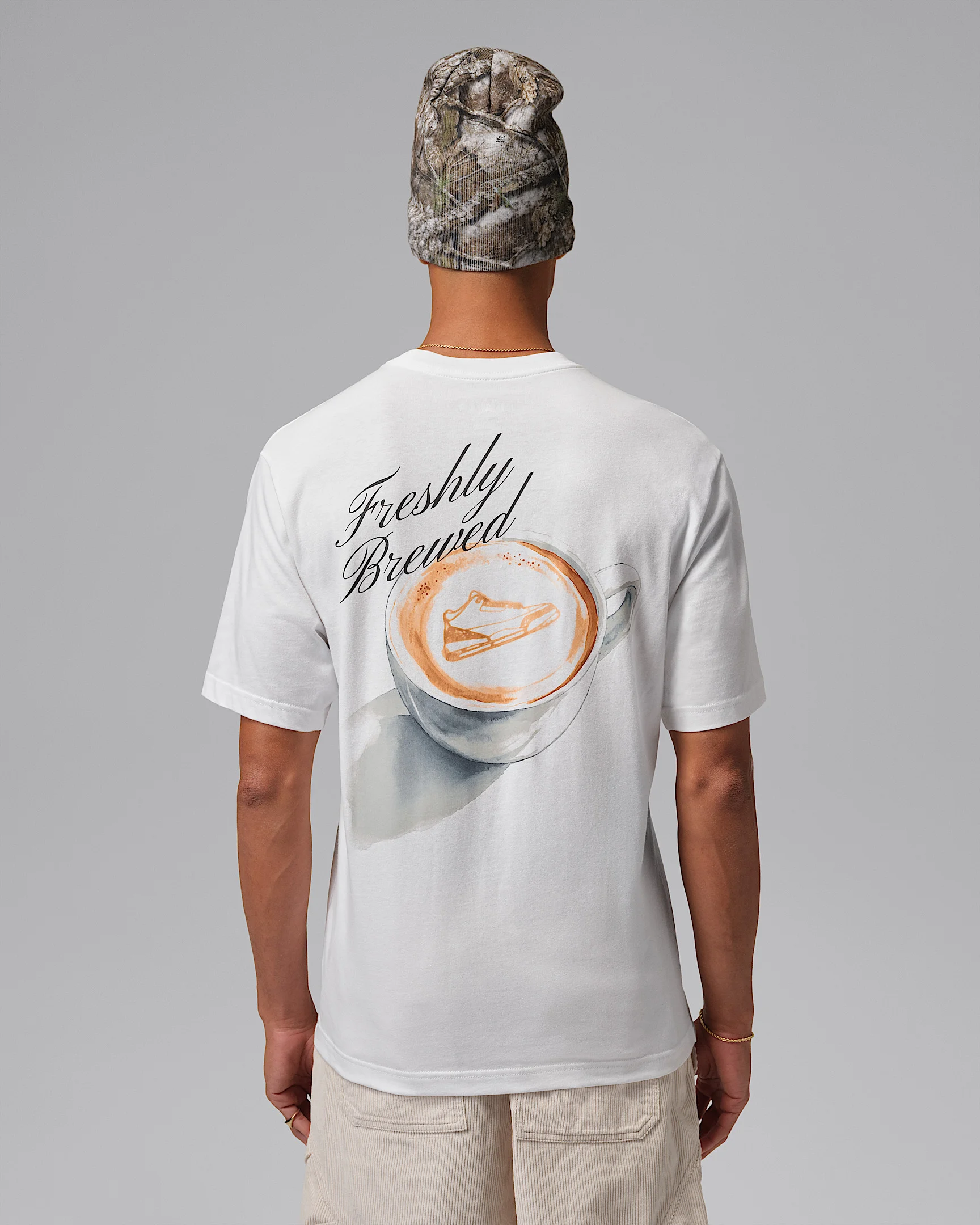 Freshly brewed kicks, served daily. Stay stylishly caffeinated with this comfy cotton tee, featuring AJ3 latte art on the back. Product Details - 100% cotton - Machine wash - Imported - Shown: White/Black - Style: IF3110-100 SIZE & FIT Model is wearing size M and is 6′2″187cm Standard fit: easy and traditional
