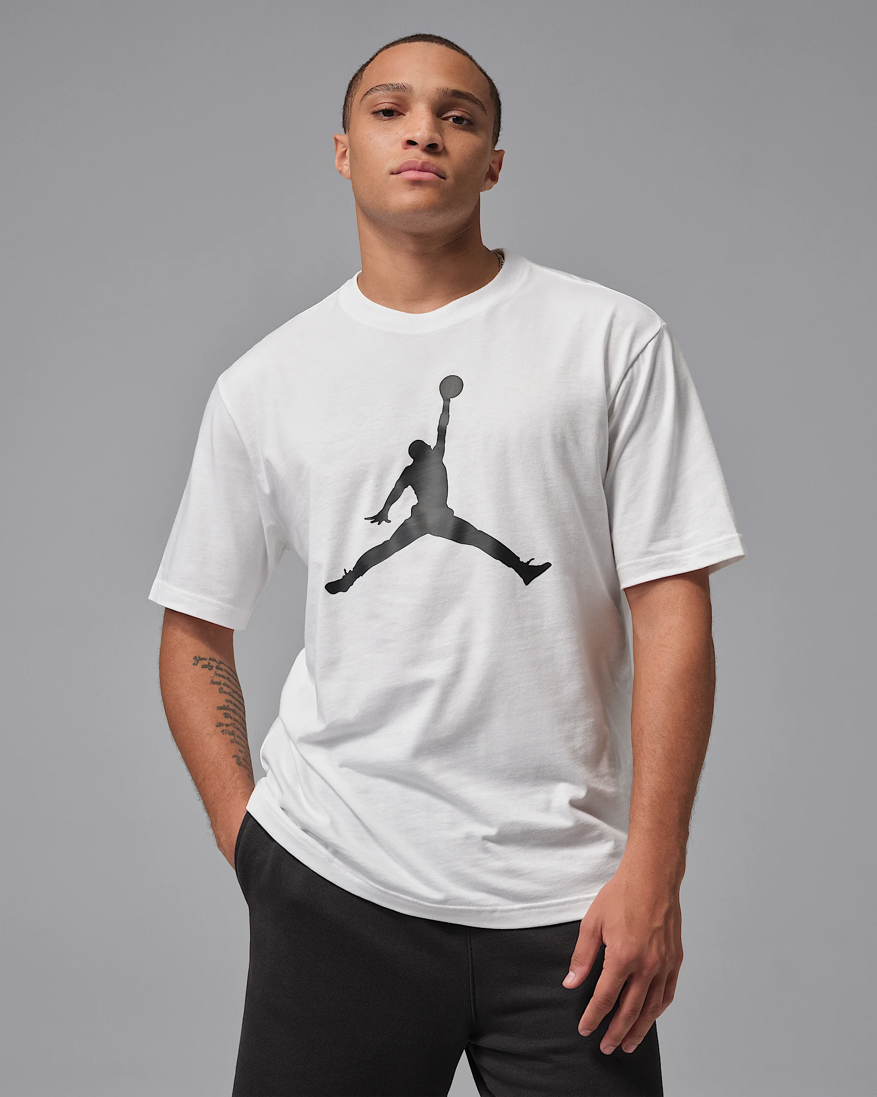 A classic tee that soars. Rep Jordan heritage with this comfortable staple, ready for everyday wear. Product Details - 100% cotton - Machine wash - Imported - Shown: White/Black/Black - Style: IF5568-100 SIZE & FIT Model is wearing size M and is 6′1″184cm Standard fit: easy and traditional