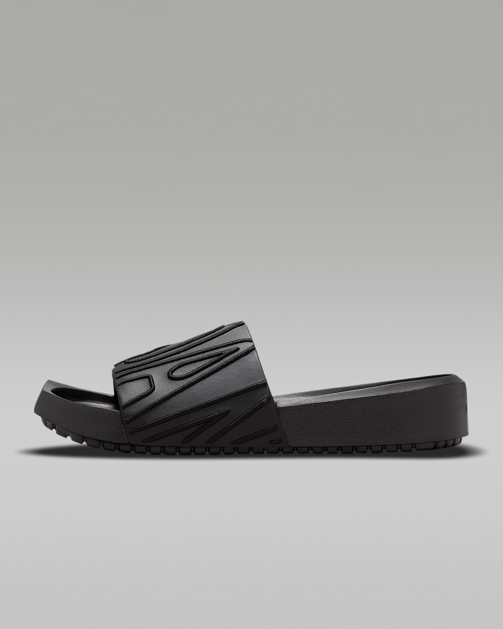 Go beyond the flip-flop in the Jordan NOLA Slide, an instant warm-weather favorite. Featuring a molded foam footbed with a squared-off toe, it's light and airy with an easy, slip-in strap. More Benefits - Deep heel cup is molded for a stable, comfortable fit. - Raised toe bar helps provide grip as you walk. - "Jordan" is debossed in the heel. Product Details - Shown: Black/Black/Black - Style: CZ8027-001