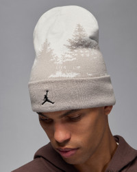 Nobody likes cold ears. And nobody likes a boring beanie. This one features a winter-inspired print and an embroidered Jumpman logo, front and center on the generous cuff. Benefits - Knit fabric feels soft and warm. - Fold-over cuff lets you personalize your look. Product Details - Body: 100% Polyester, Lining: 100% Polyester - Hand wash - Imported - Shown: Sail/Medium Orewood Brown/Black - Style: HV1077-134