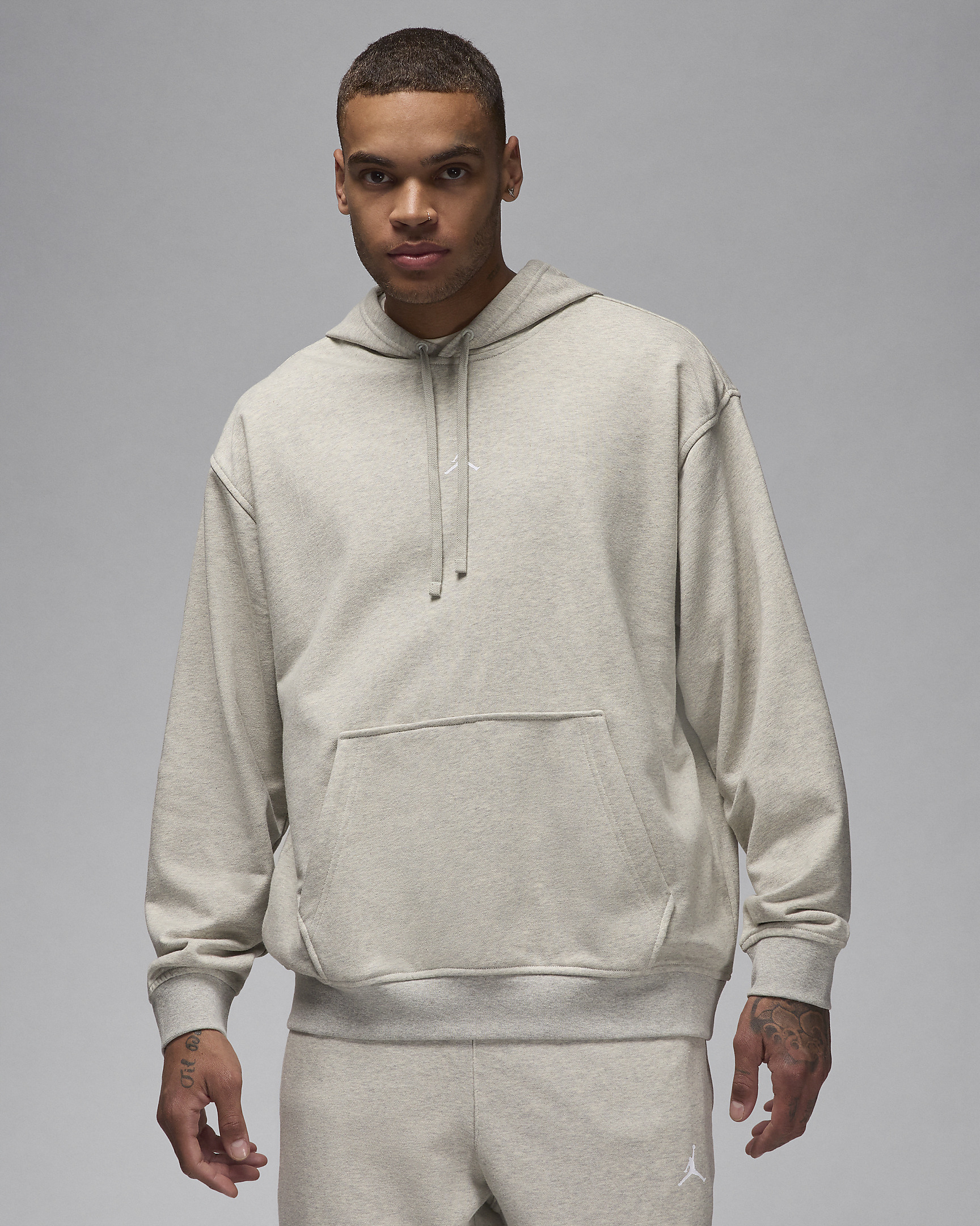 From training to simply hanging with your crew, you need a hoodie that does it all. Smooth on the outside with tiny unbrushed loops on the inside, this French terry layer comes packed with our sweat-wicking tech to help you stay fresh no matter what you're doing. Benefits - Nike Dri-FIT technology moves sweat away from your skin for quicker evaporation, helping you stay dry and comfortable. - Loopback fleece is breathable and provides lightweight warmth. Product Details - Body: 62% cotton/38% polyester. Pocket bag knuckle side: 100% cotton. Hood lining: 100% cotton. - Front pocket - Ribbed cuffs and hem - Machine wash - Imported - Shown: Grey Heather/White - Style: FV8606-050 SIZE & FIT Model is wearing size M and is 6′1″185cm Standard fit: easy and traditional