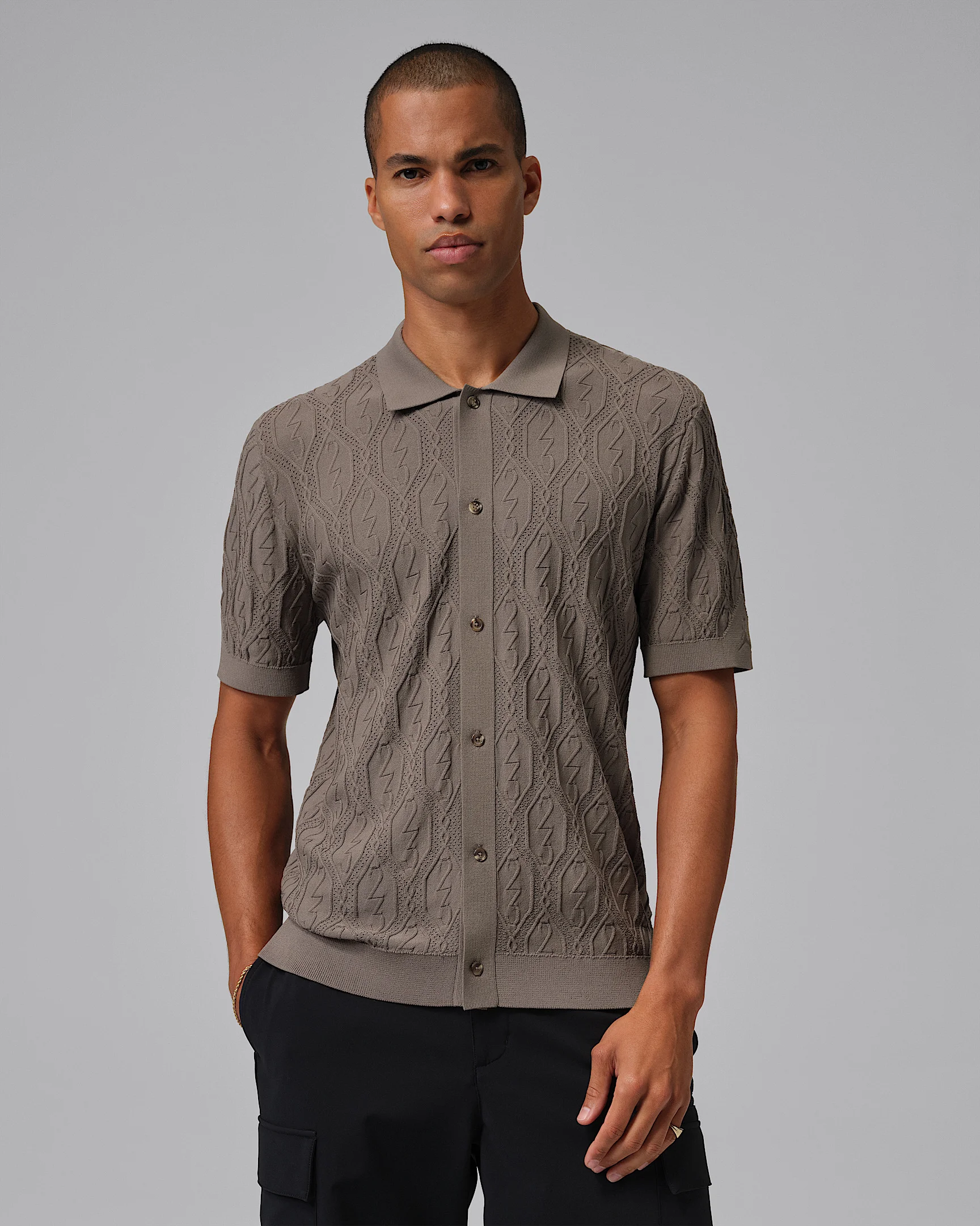 This button-down top is made for the links. Lightweight knit fabric helps you stay fresh through all 18 holes. And the look? It's Jordan style through and through. Product Details - 58% Viscose, 42% Nylon - Hand wash - Imported - Shown: Olive Grey - Style: II7267-040 SIZE & FIT Model is wearing size M and is 6′2″187cm Standard fit: easy and traditional
