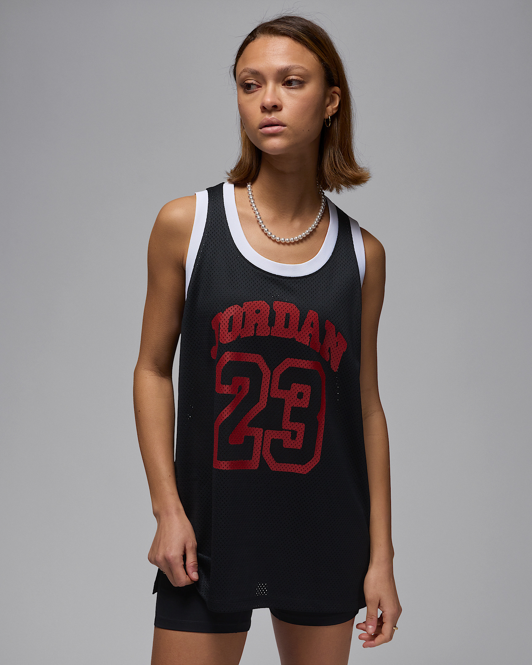 Rep the greatest to ever do it in this roomy jersey. Lightweight mesh keeps it breathable, while dropped armholes and ribbed trim add classic on-court style. Product Details - 100% polyester - Machine wash - Imported - Shown: Black/Varsity Red/White - Style: HJ0044-010 SIZE & FIT Model is wearing size S and is 5′9″175cm Loose fit: roomy and relaxed