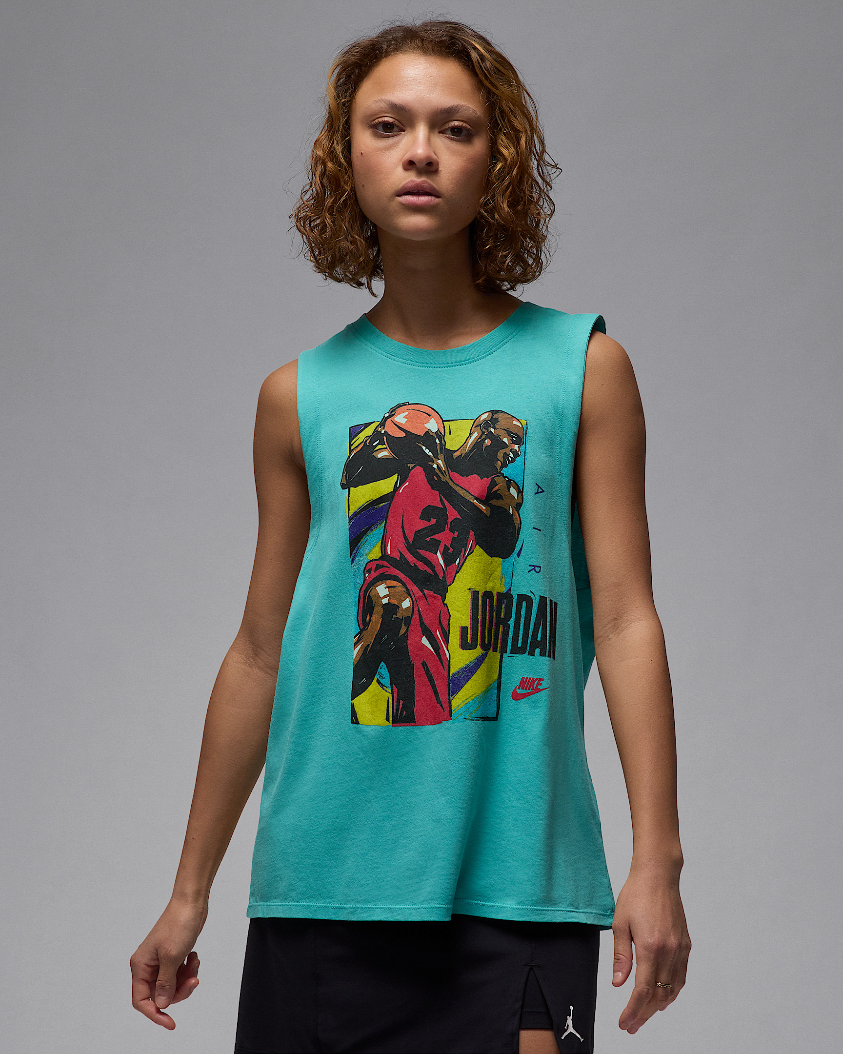 A nod to MJ's classic cut-off tees, this sleeveless top combines retro graphics with an allover wash to give you an old-school look. Lightweight cotton fabric, extended armholes and a loose fit add a truly casual feel. Product Details - 100% cotton - Machine wash - Imported - Shown: Washed Teal - Style: HJ0199-392 SIZE & FIT Model is wearing size S and is 5′9″175cm Loose fit: roomy and relaxed