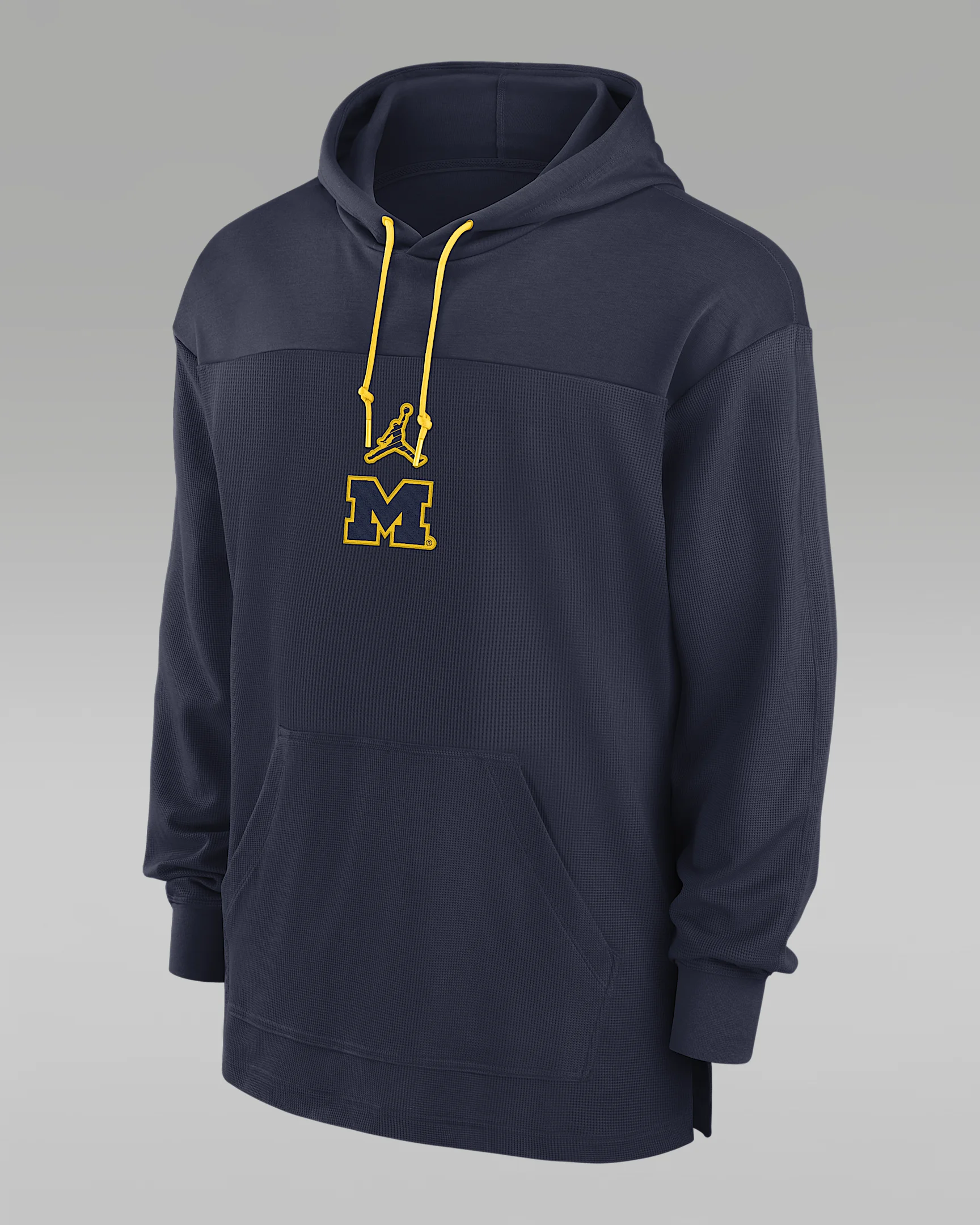 The Michigan Wolverines Sideline Jersey Hoodie is built for performance with sweat-wicking technology and a soft polyester-cotton blend for a dry, comfortable game-day experience. Benefits - Dri-FIT technology moves sweat away from your skin for quicker evaporation, helping you stay dry and comfortable. - Double-knit pique fabric helps add structure and stability. Product Details - Front pocket - Hood with adjustable drawstring - 78% polyester/22% cotton - Machine wash - Imported - Shown: Navy - Style: 02FICNAMMWN-X7R