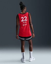 Got dreams to be the next A'ja Wilson? The first step is looking the part. This relaxed-fit replica jersey gives you details modeled after what the Aces wear on the court and lets you rep your favorite player everywhere you go. Benefits - Nike Dri-FIT technology moves sweat away from your skin for quicker evaporation, helping you stay dry and comfortable. - Lightweight knit fabric feels smooth against your skin. Product Details - 100% polyester - Machine wash - Imported - Shown: University Red - Style: HQ8559-657 SIZE & FIT Loose fit: roomy and relaxed